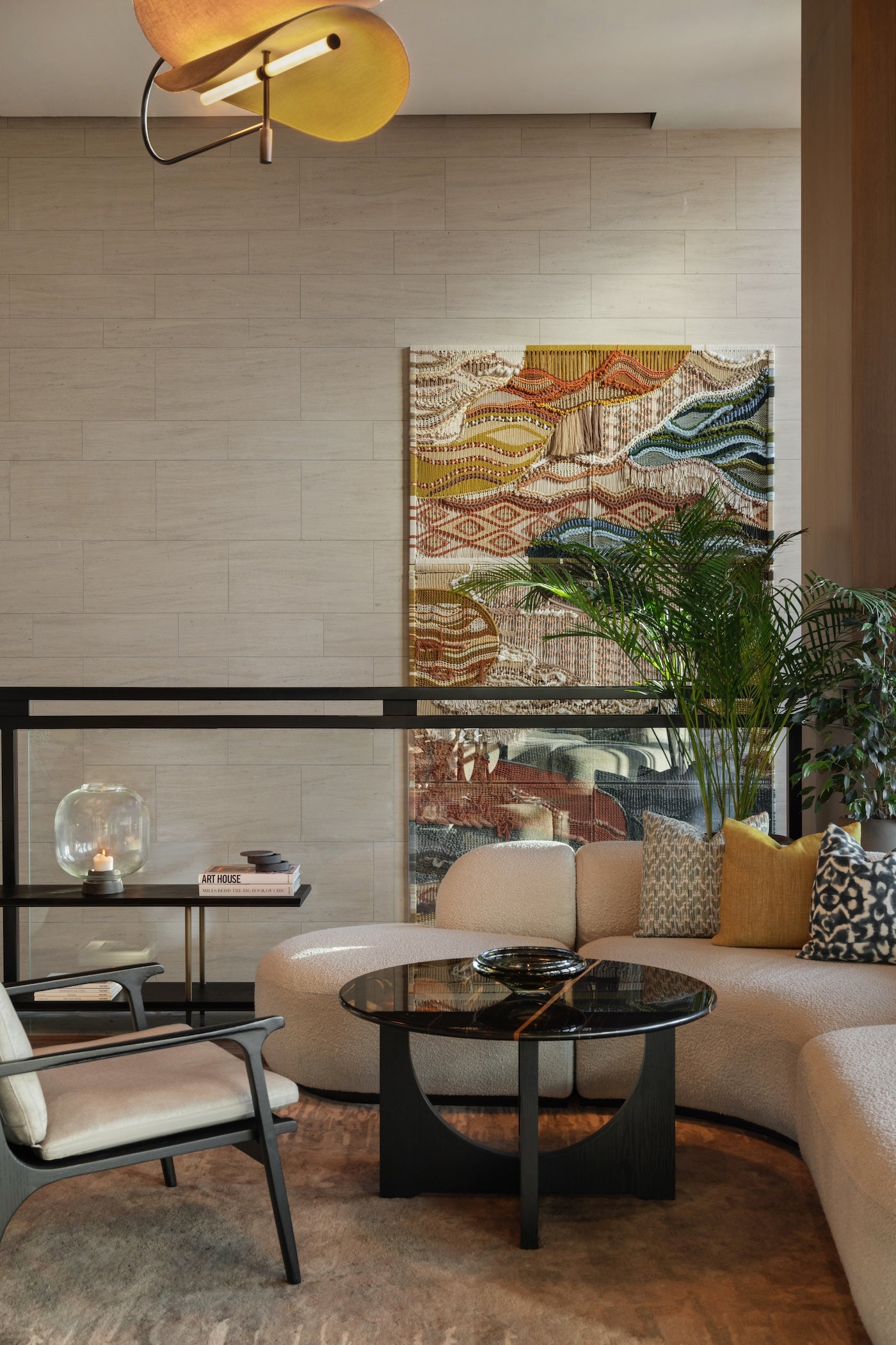 For the Banyan Tree Hotel & Residence in Bluewaters Dubai, a thoughtful curation of art, decor, and accessories was undertaken to align with the brand's ethos of nature and wellness. Spanning across 197 hotel rooms, a private villa, and 98 residences, over 2,470 pieces were carefully selected within a tight three-month timeline. The collection included large commissioned artworks and handcrafted accessories sourced from global artisans, with a focus on local artists to authentically capture the Emirates' unique landscape. The carefully chosen pieces infused each space with a sense of place, blending modern luxury with the natural beauty of the region. Signature works from artists like Purdey Fitzherbert, Agnes Hansella, Momoka Gomi and Etienne Moyat were thoughtfully placed across key areas, including the lobby, restaurant, and royal suites, creating a harmonious and inspiring environment throughout.