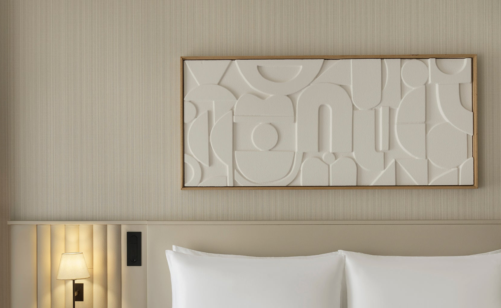 For the iconic Delano Hotel in Dubai, the art, accessories, and books were carefully curated to reflect the brand’s exclusive and sophisticated ethos. Focused on the 250 rooms and suites, lobby, and corridors, the curated pieces combine modern sophistication with natural textures and regional influences. A total of 2,379 pieces were sourced for the hotel, including bespoke wall art in the rooms and suites, designed specifically for the project. Photography from the iconic Delano Miami was incorporated to mark the brand’s re-opening in Dubai. Each piece was selected to evoke a sense of understated luxury, celebrating craftsmanship and the spirit of the surrounding landscape. The curated elements contribute to the hotel’s atmosphere, creating a refined environment that seamlessly integrates warmth and modernity.