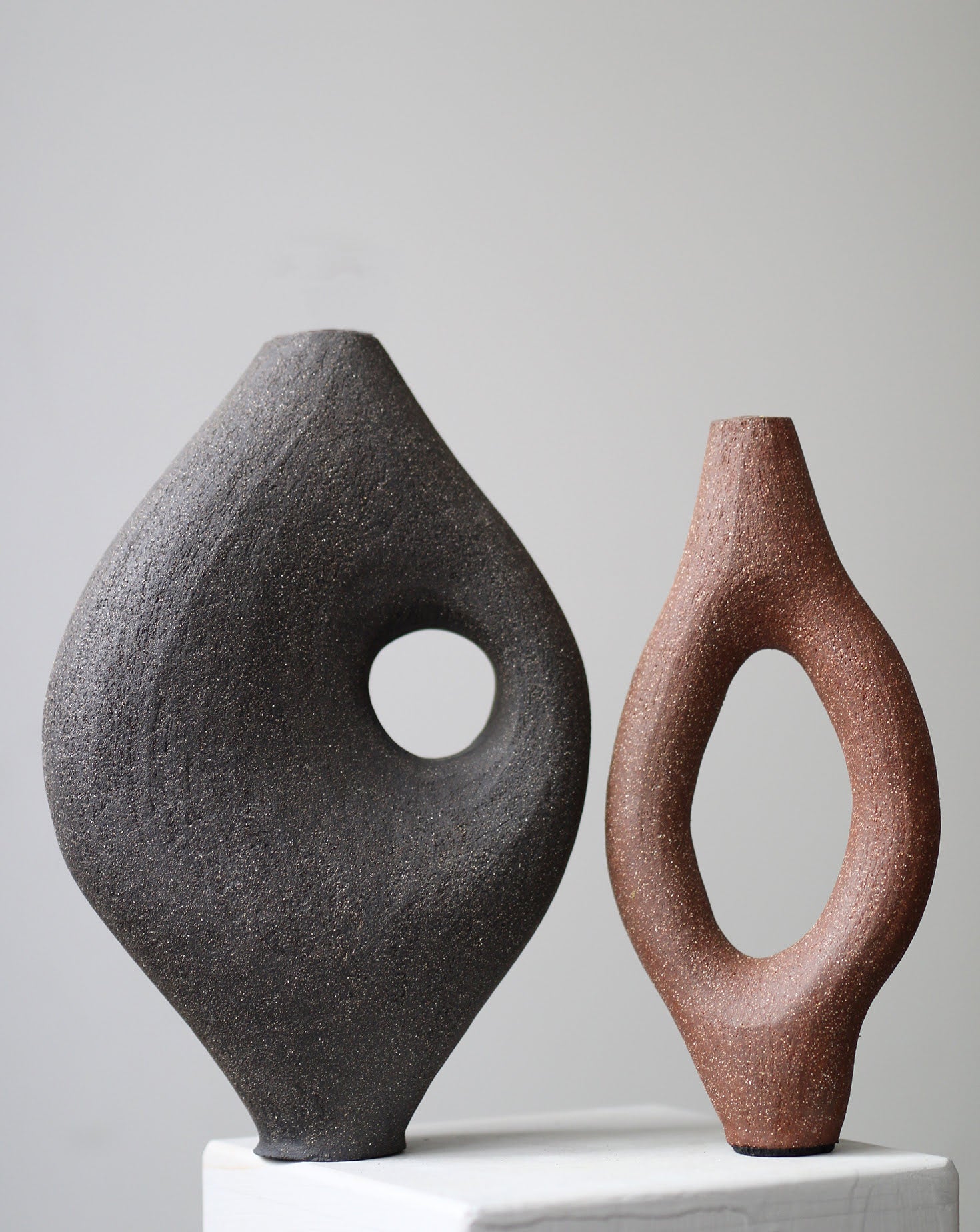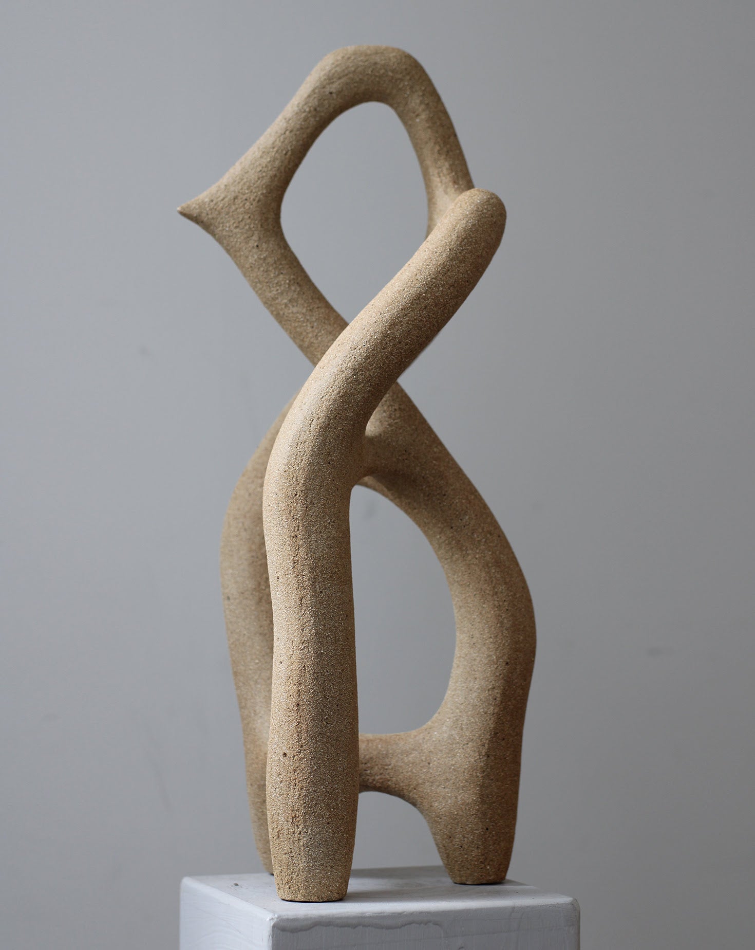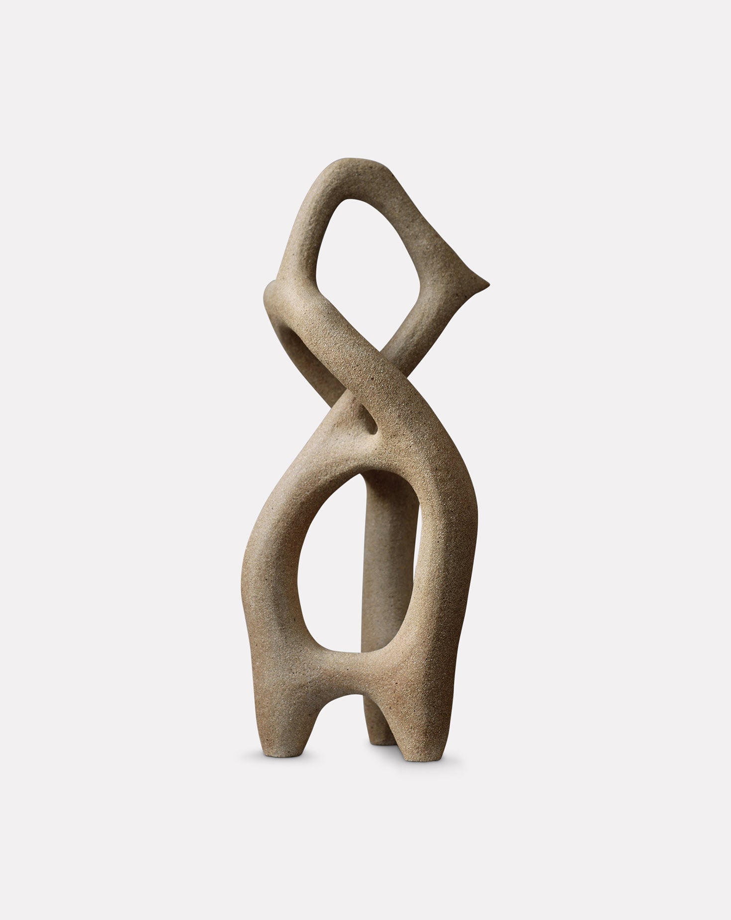 Abid's handcrafted sculptures embody biological narratives via a harmonious interplay of shape and materiality. Employing pinch, coiling, and slab techniques with diverse clays, each piece effortlessly blends form, colour, texture, and space, with some clear-glazed or sealed for water resistance, while the majority remain unglazed. His sculptural pieces push the boundaries of clay, delving into the integration of ceramics with materials like paper, metal, and wax to explore their properties and potential synergies.