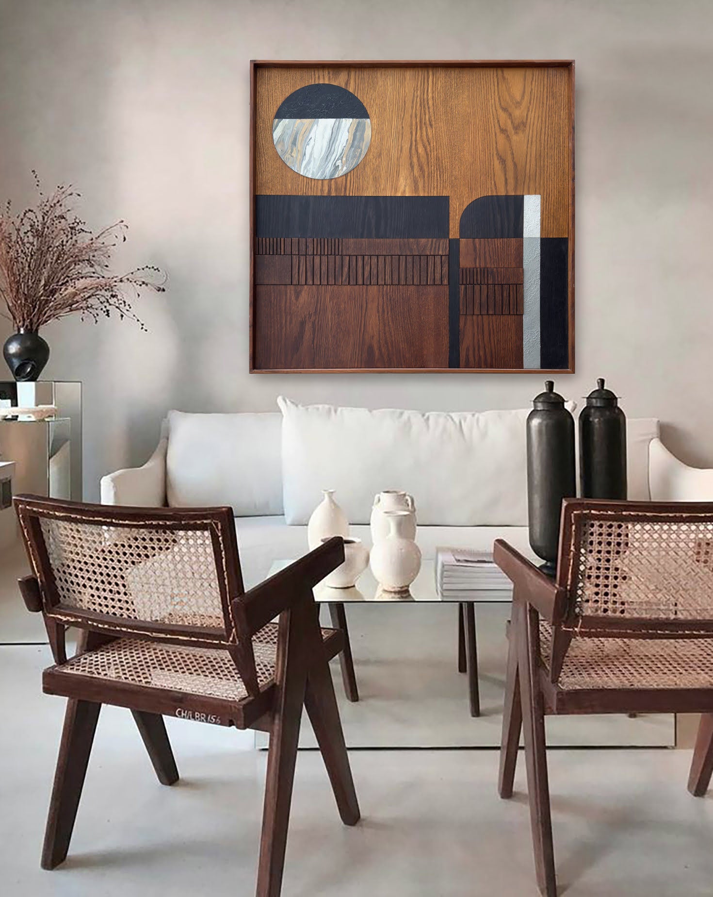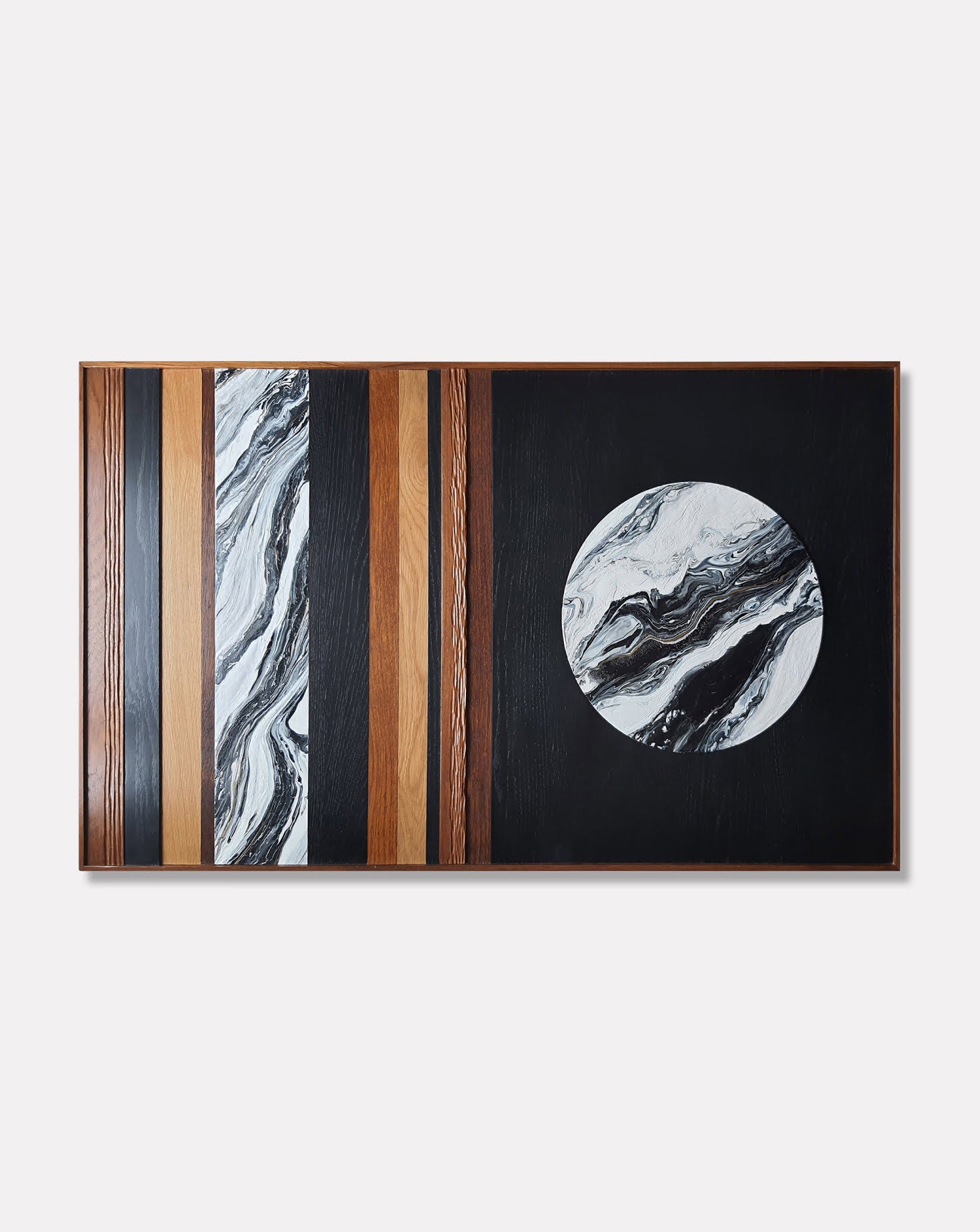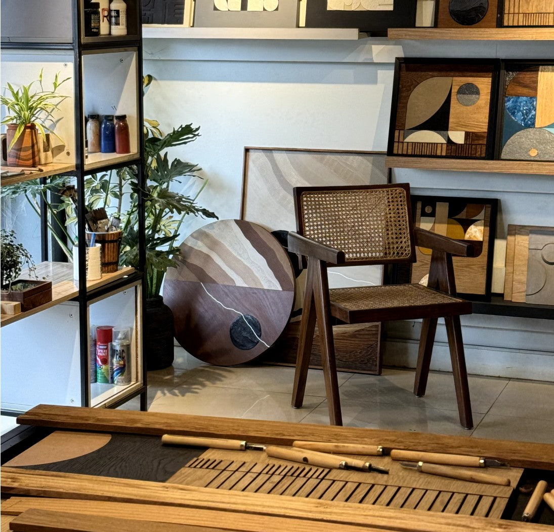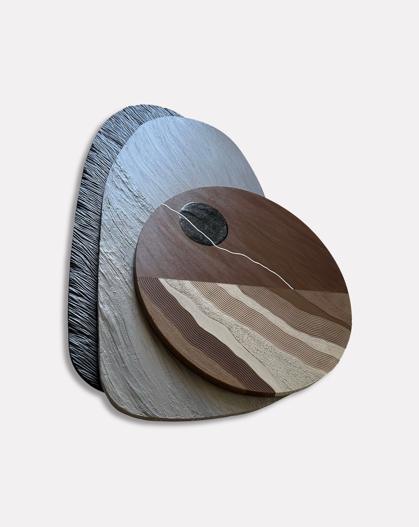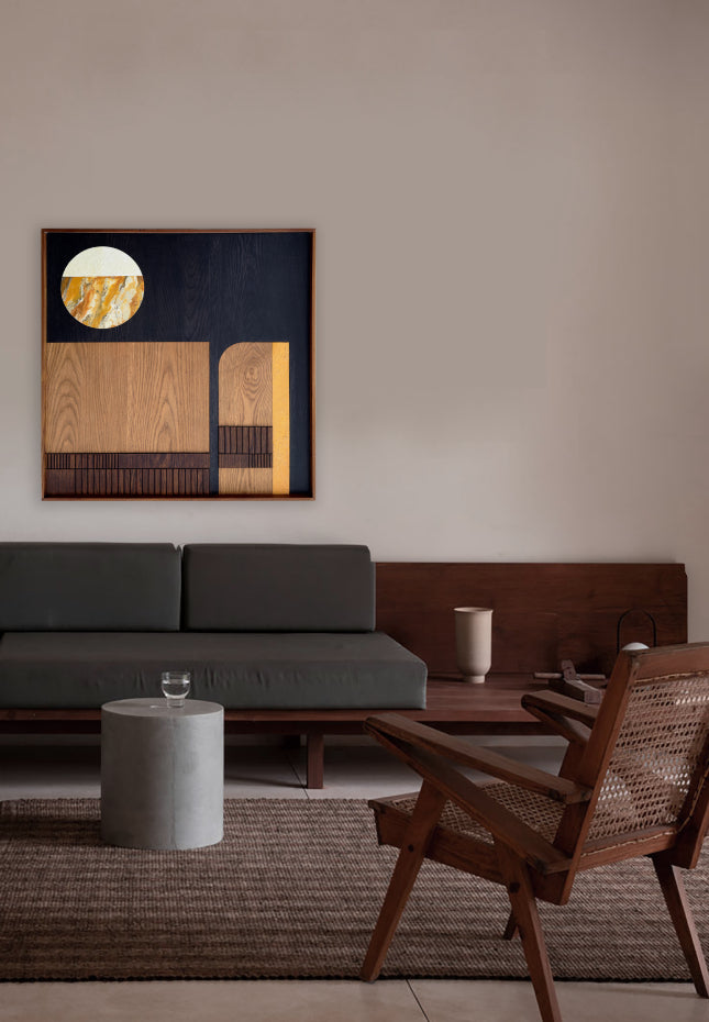 Every piece by Hue Odyssey is crafted in Amal's Belgaum studio, allowing for full control from concept to completion. His artworks emphasize the tactile and textural quality, interacting with light and shadows to create a dynamic effect. Amal collaborates with renowned firms across India, ensuring each piece is a distinctive blend of design mastery and heritage.