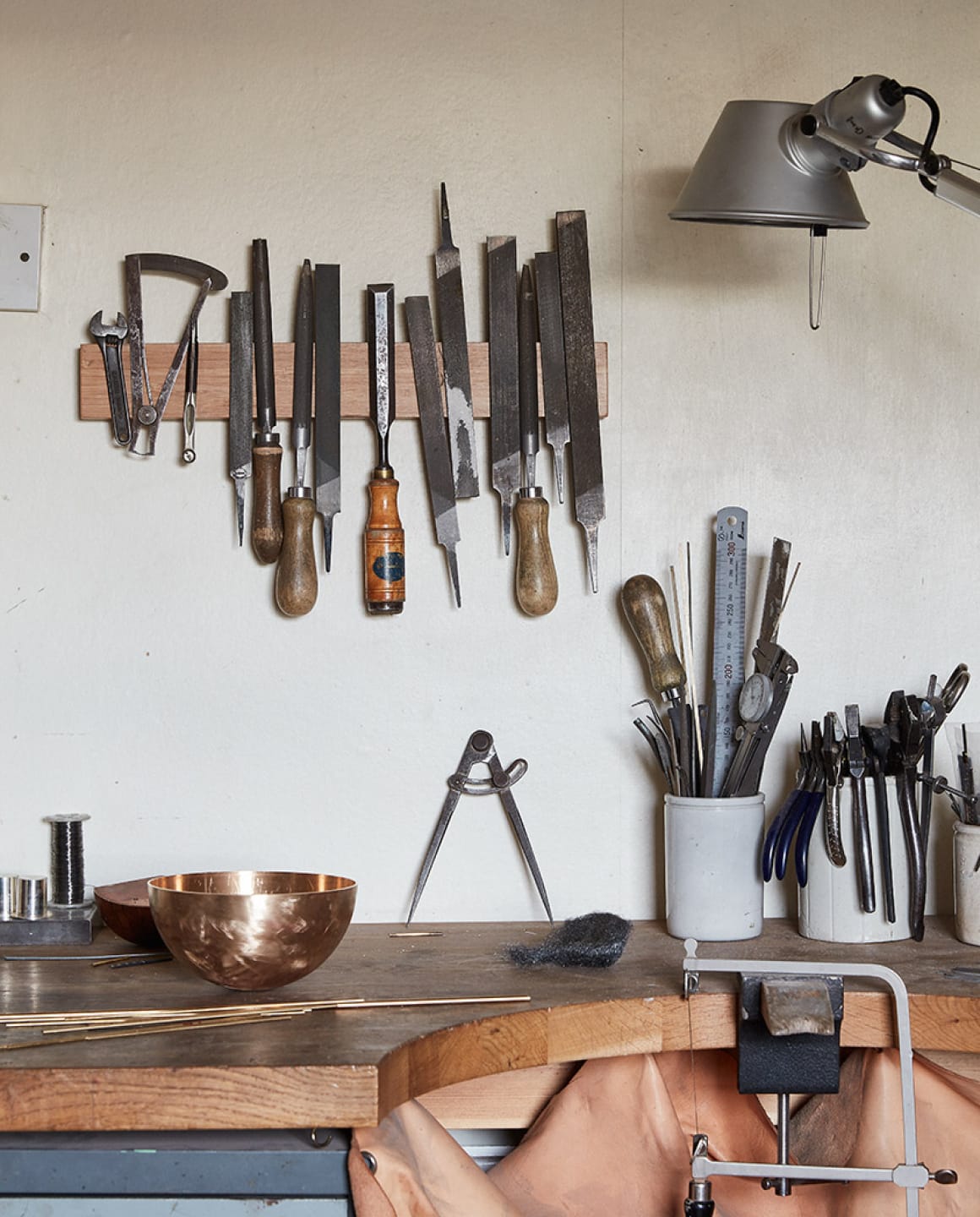 Applying traditional techniques such as hand piercing, drilling and soldering, Ane enjoys working with a variety of metals, combining them in an exploration of colour and texture. Having focused on silver tableware for many years, she gradually shifted towards creating more abstract pieces that are less concerned with traditional perceptions of function. Her work investigates the meeting of contrasting elements, often combining simple, heavy bowl forms with visually complex, open and delicate structures.