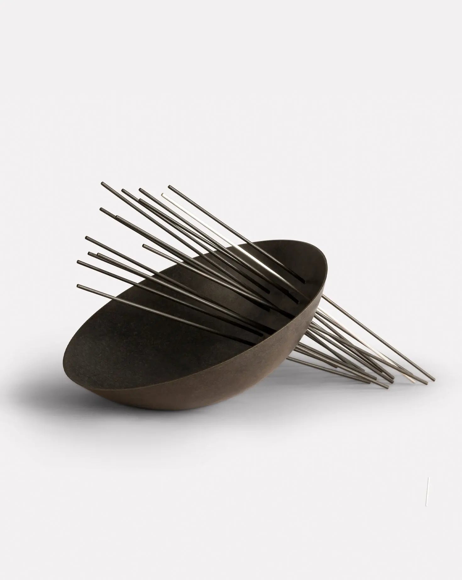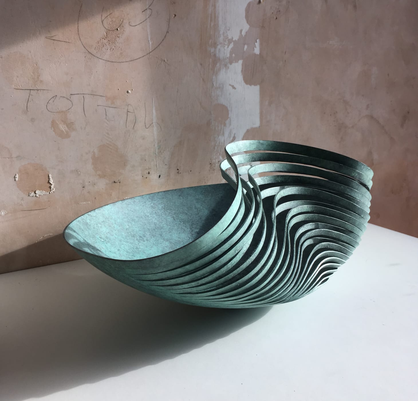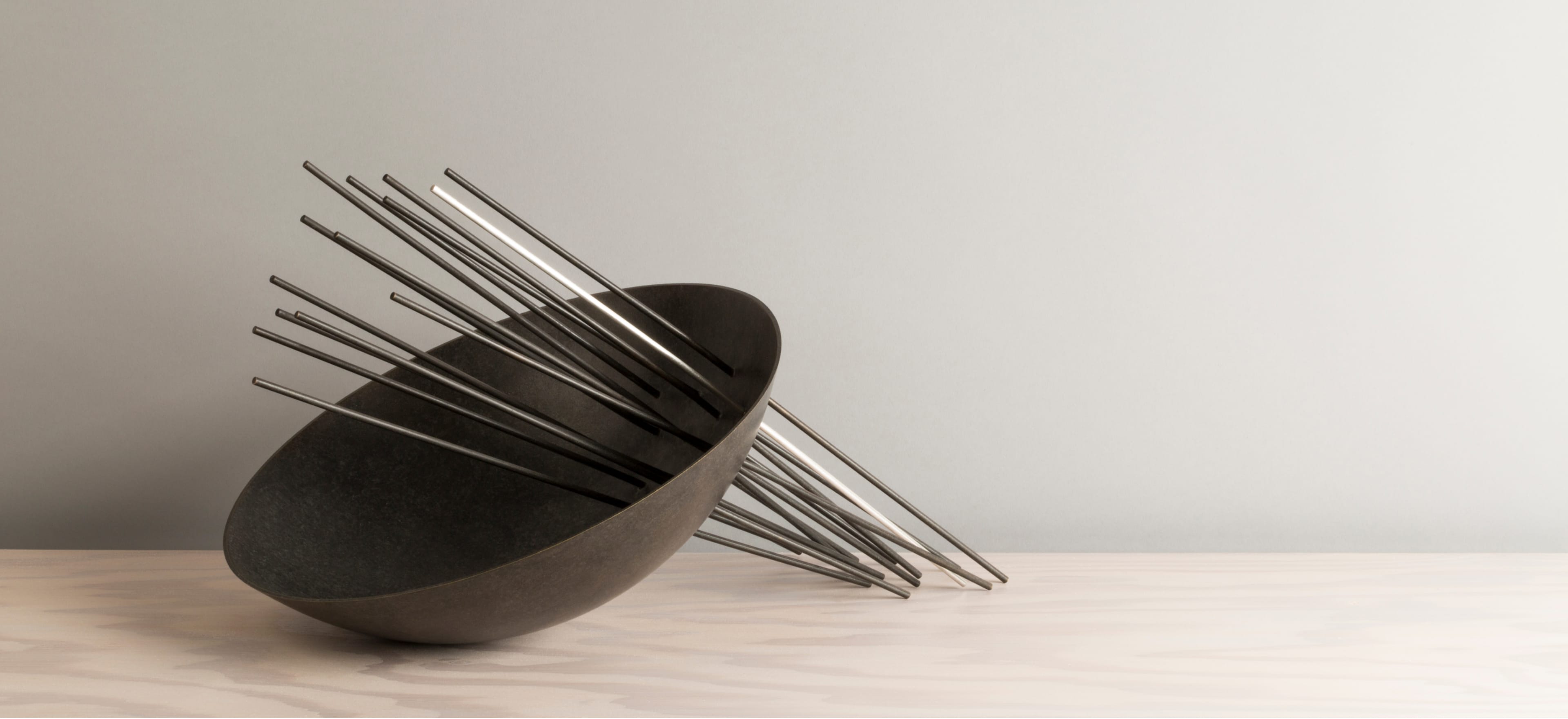 All my work begins with the simple geometry of bowl forms and flat sheet. I often include metal wire, used like line drawing in space.
