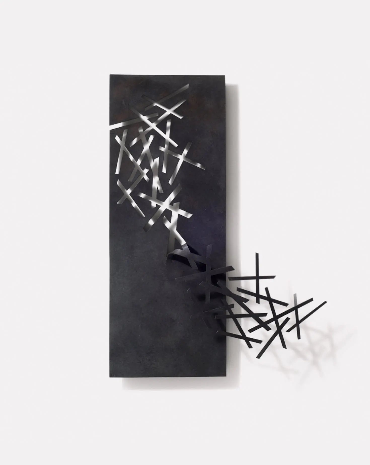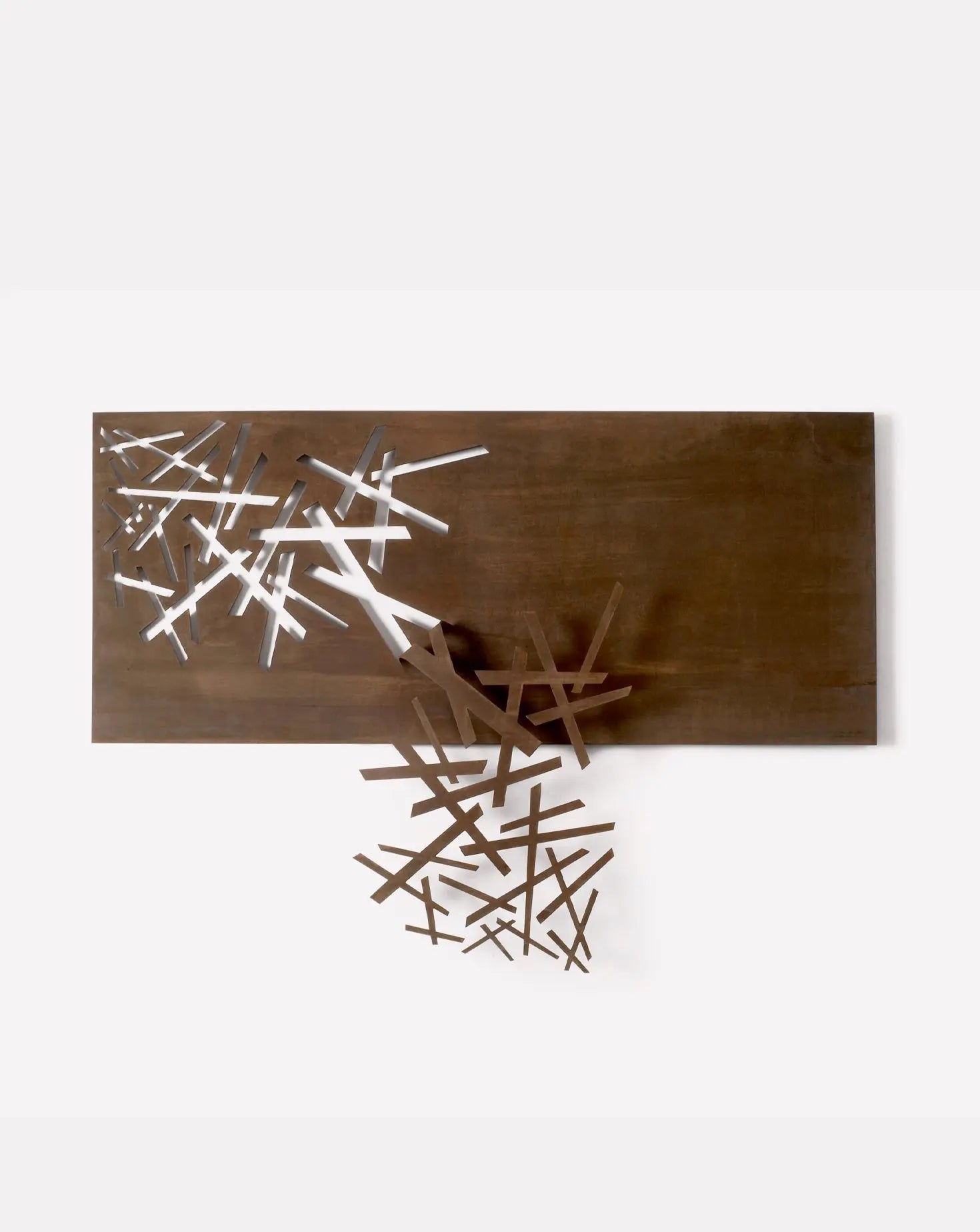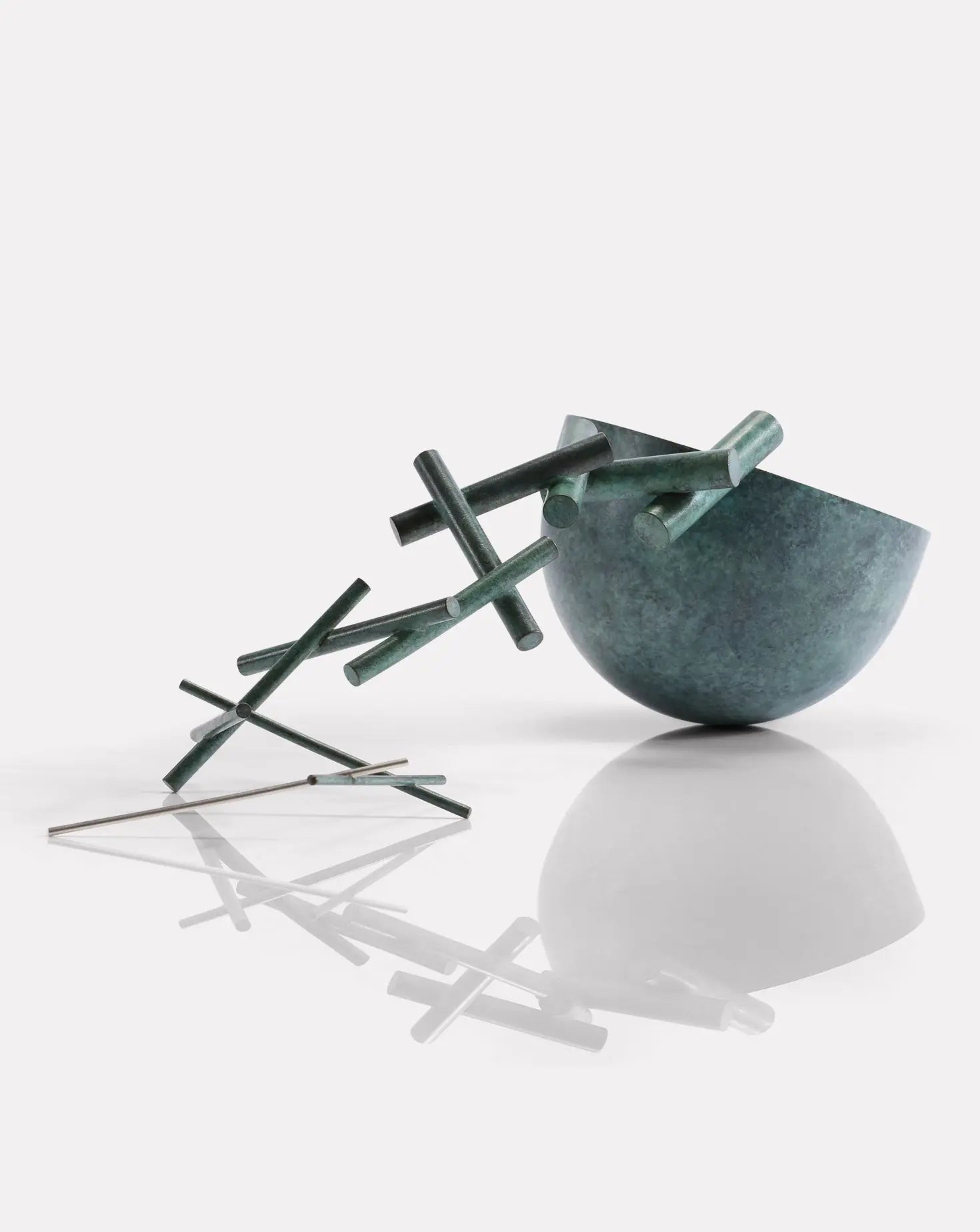 All my work begins with the simple geometry of bowl forms and flat sheet. I often include metal wire, used like line drawing in space.
