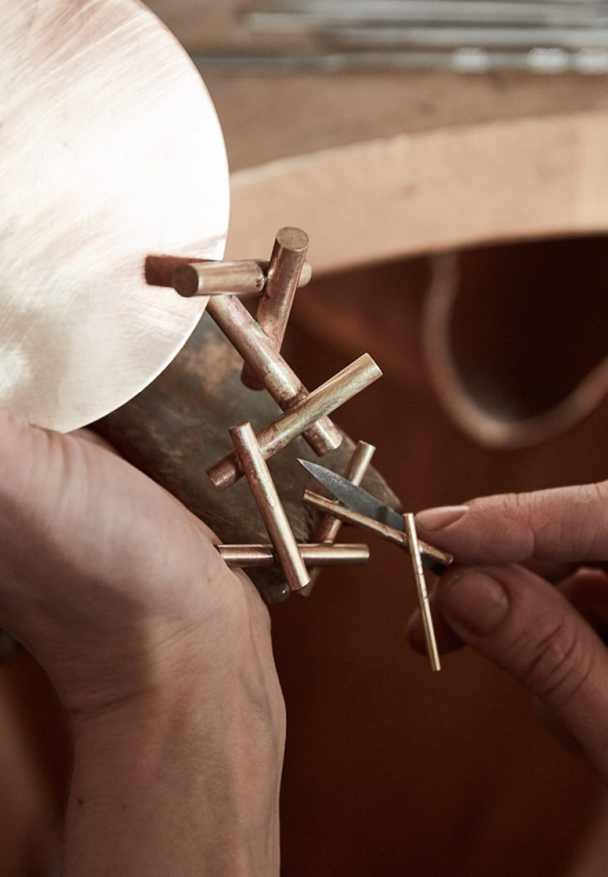 Ane was raised in Copenhagen, moving to London to study Jewellery Design at Sir John Cass. She completed her MA (Metalwork & Silversmithing) at the Royal College of Art (RCA), before establishing her practice in 1999.