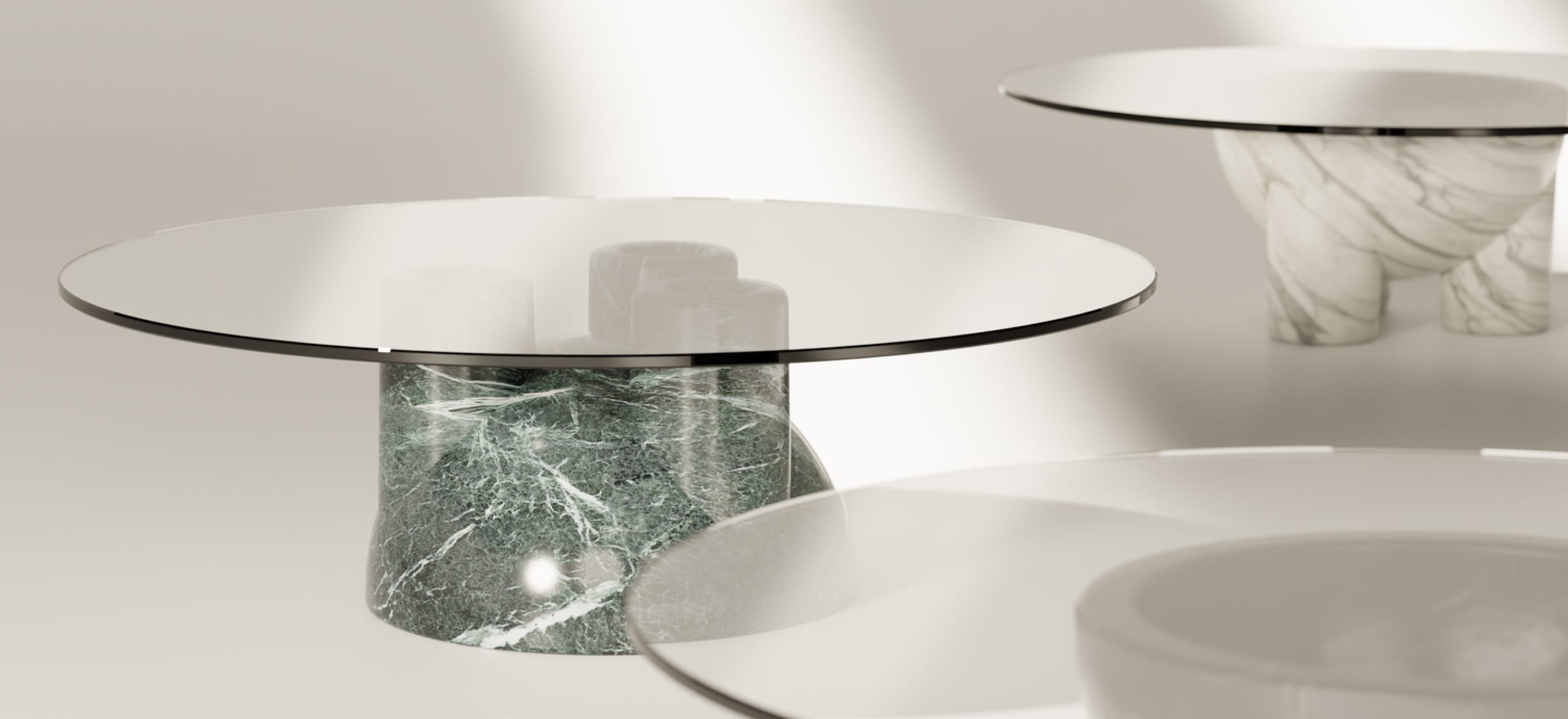 Sustainability, functionality, and playful minimalism sit at BURGIO.’s core. Stoneware pieces are moulded and hand-finished; the distinctive elastic "memory" of the raw material requires careful handling to attain its intended shape. Marble designs, including Carrara, Arabescato, and Nero Marquina, are shaped using CNC machines and then left with human hands to guarantee a seamless appearance, as each design originates from a single marble block. Keep an eye out for the reversible coffee table, available in five different marble stones and the whimsical FUUUUSILLO side table, inspired by the duo's favourite pasta shape.