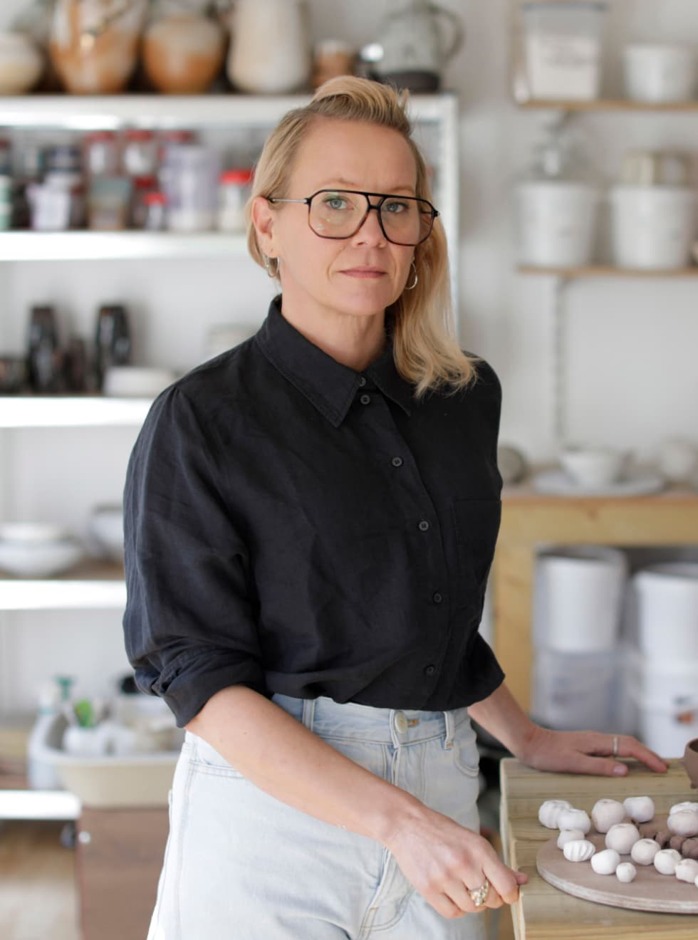 Throwing pots on the wheel, Cecilia has an intimate relationship with each ceramic work. She pinches, pushes and adds to the clay using hand building techniques such as coiling, to create pieces that are rich, tactile and organic. In some of her works she creates markings and adds decorative sections inspired by ancient African vessels. She varies between using stoneware, black clay and porcelain and experiments with different glazes, slips and engobes, often beginning the development of a new collection while working on a current one. Cecilia's work is ever-evolving, driven by curiosity and enjoyment.
