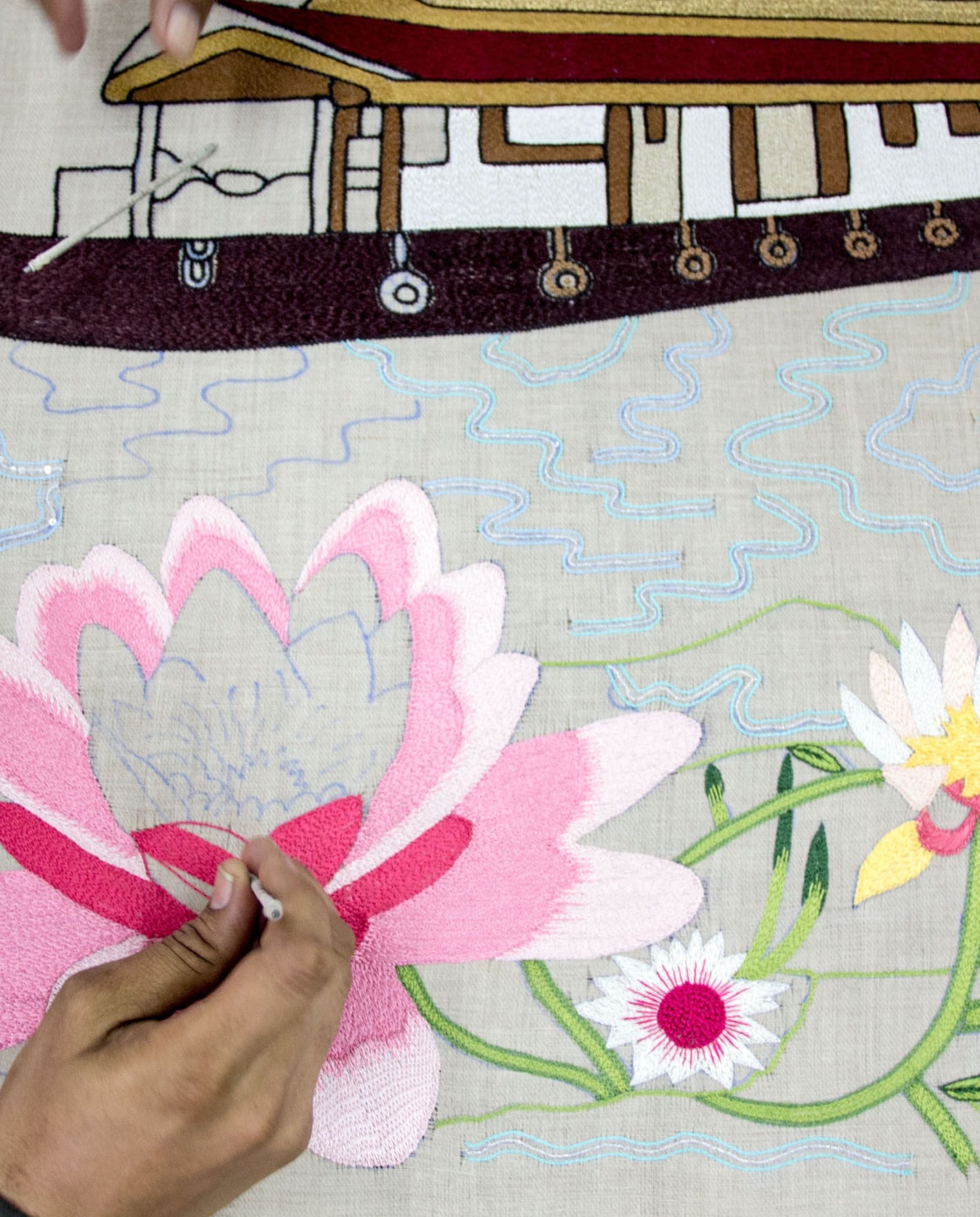 For over 21 years, our sole focus has been to empower our growing community of artisans and designers by embroidering directly on cashmere, and create wearable pieces of art.