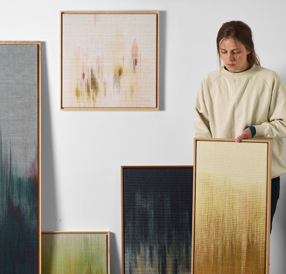 Nilsen’s philosophy is rooted in slow, intentional making. She embraces the meditative rhythm of the loom and the invisible labour behind each work, blending technical complexity with emotional depth. Her woven canvases have been exhibited at the Royal Academy of Arts, Collect Art Fair, London Craft Week and London Art Fair, and are held in private collections across Europe, the US, and Asia. With over a decade of experience in fashion and interior textiles, she now works exclusively on limited-edition works and bespoke commissions, fluidly moving between art and design.