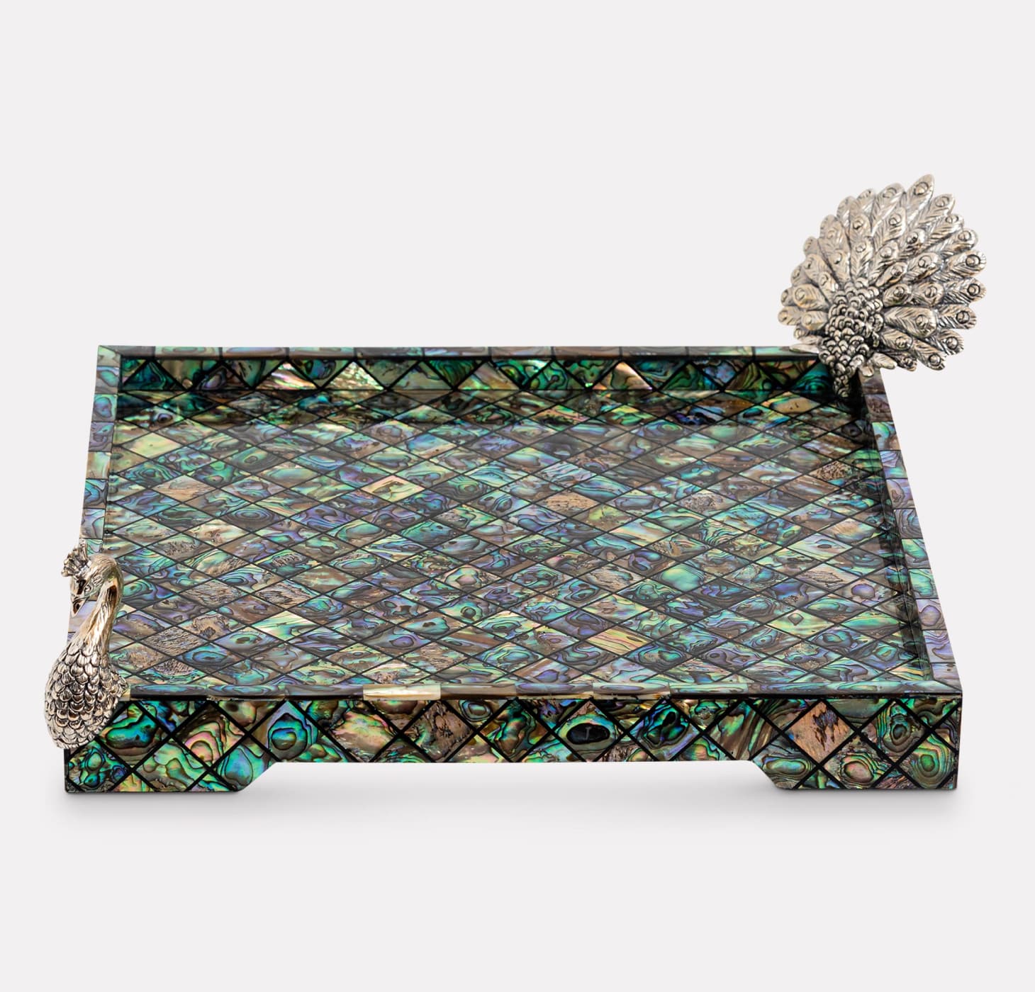 Mother Of Pearl Silver Swan & Shell Wings Plate