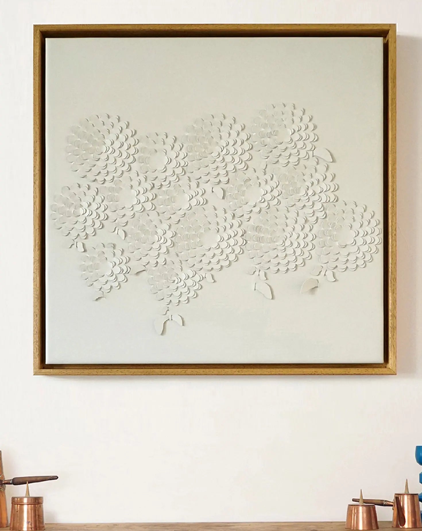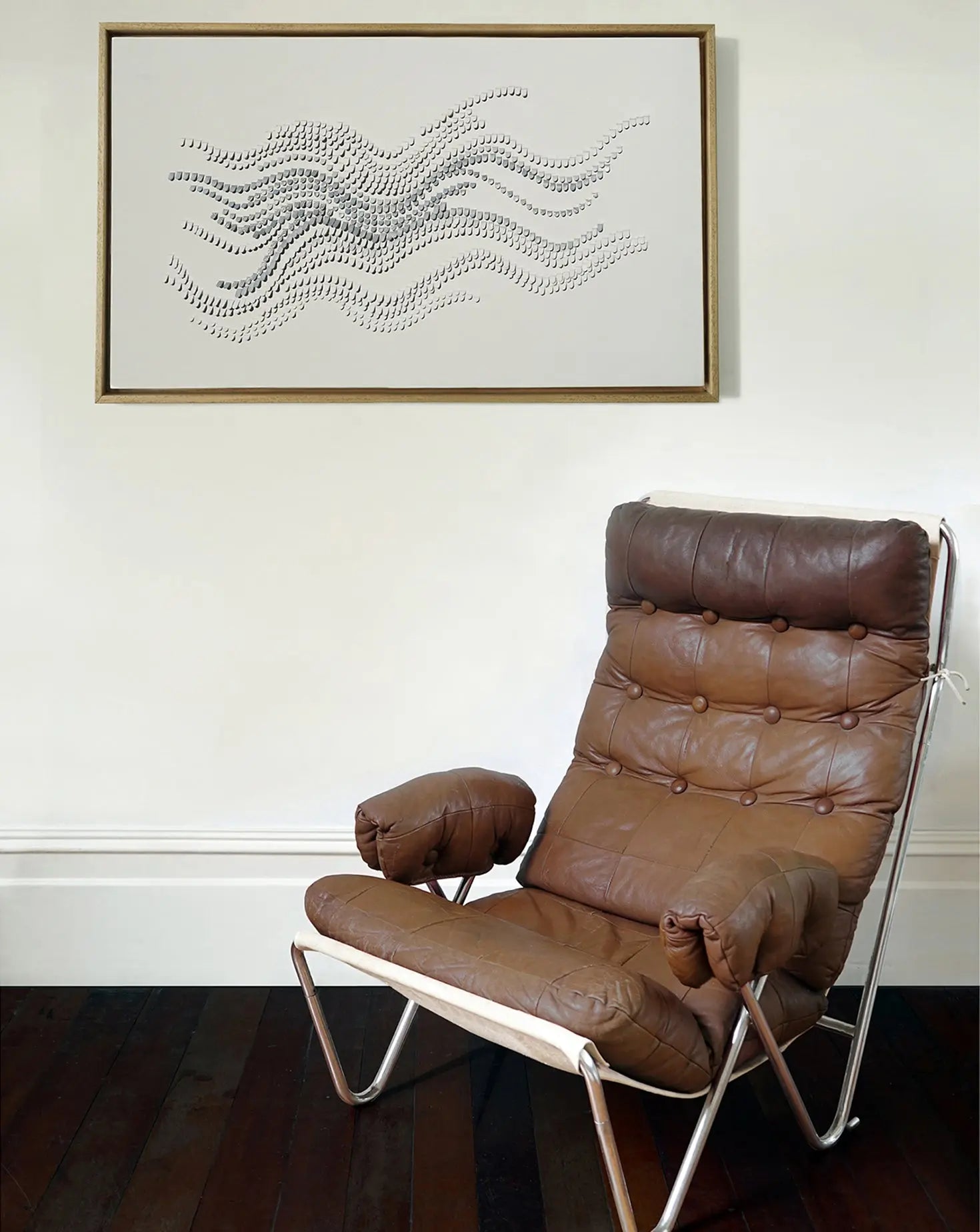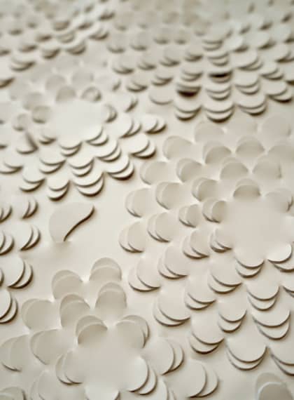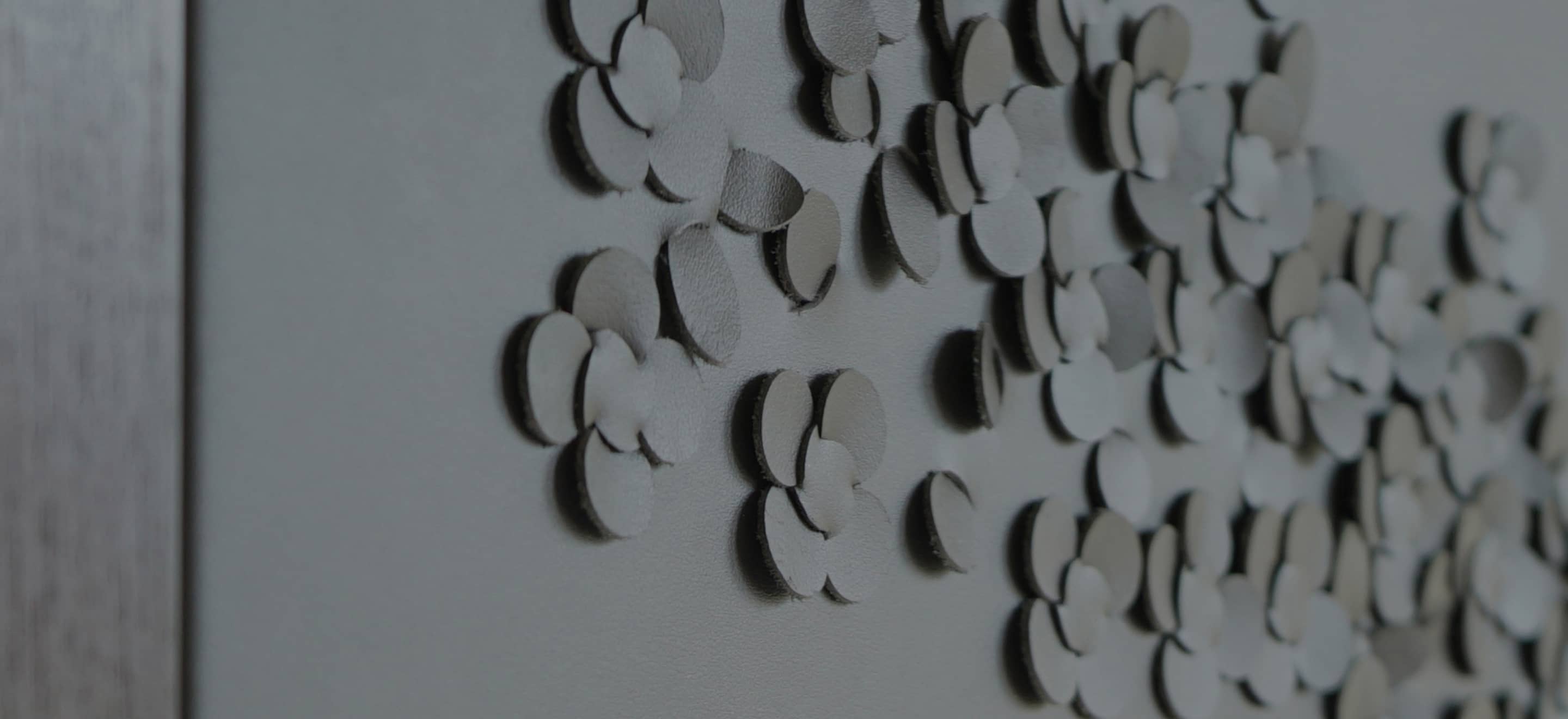 Louise works with two layers of sustainably sourced leather, drawing on her couture background to cut, weave and fold them together until they become one rich and sculptural surface. From her canvases, graceful forms such as grasses, leaves, blossom and feathers emerge. Simplicity and craftsmanship are at the heart of Louise's enduring work. Each piece is made to order so no two pieces are the same.