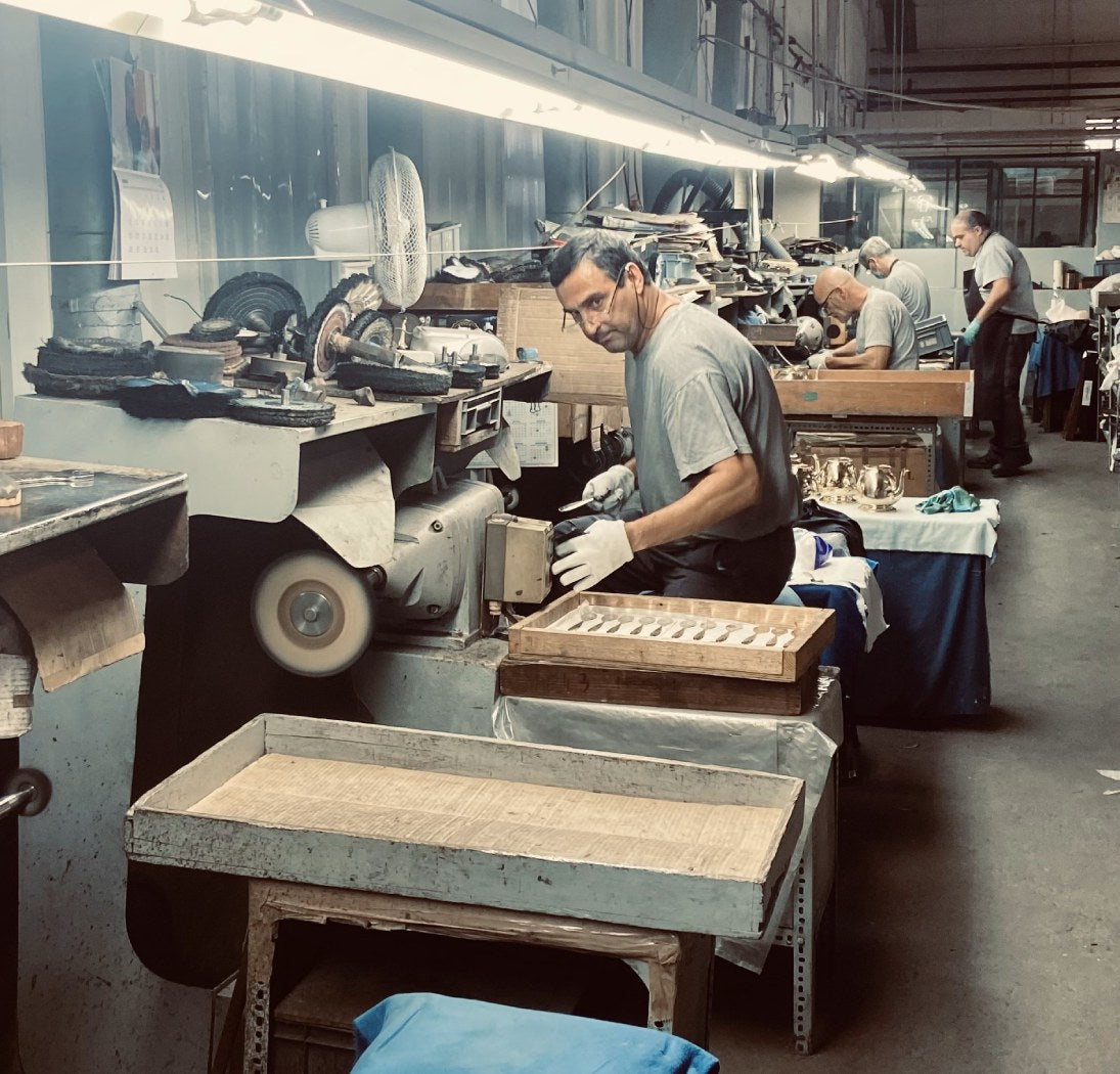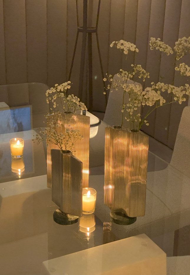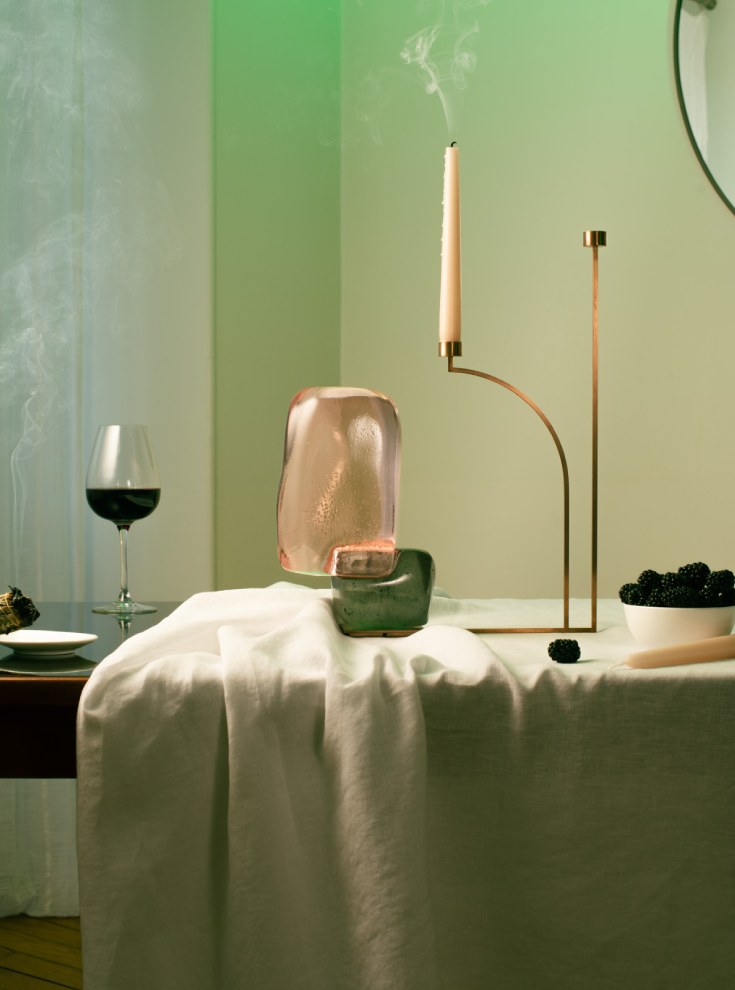 Driven by nostalgia, Mireille, Mazzoni’s grandmother, holds a special place in the founder’s heart who recalls Sunday lunches spent around the dining table, conversing, and tucking into simple dishes with loved ones. Mazzoni’s vision steers clear from ordinary and mundane table settings, instead, focus is placed on celebrating the extraordinary through precious materials - such as gold leaf, copper and resin – reimagined pique-fleurs, striking geometry among other impeccable materials.