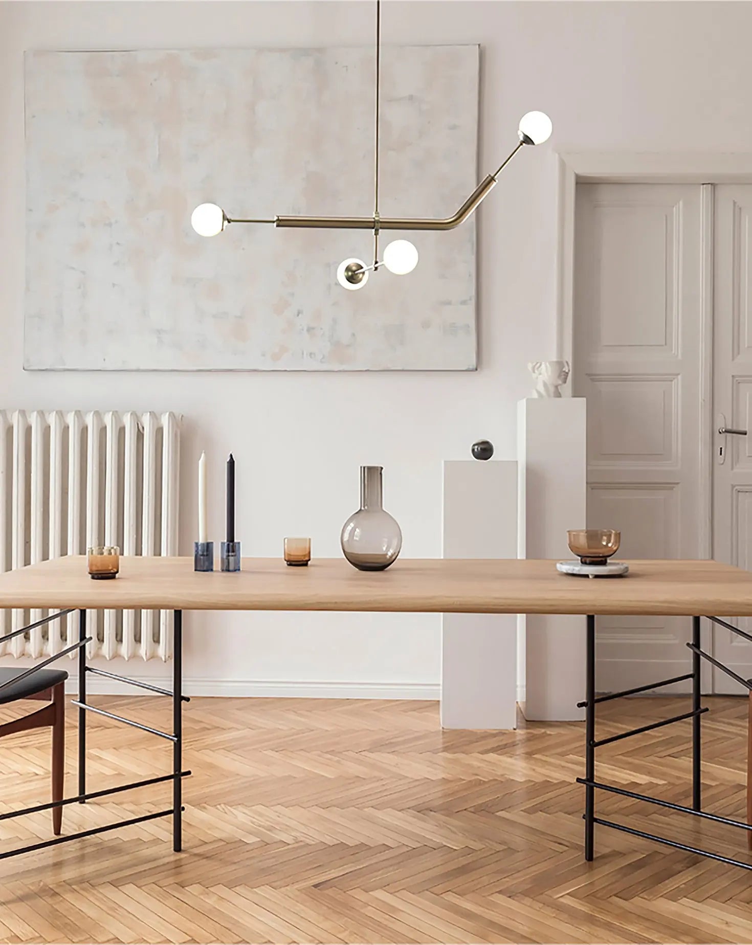 The sculptural installations created at Naama’s studio reflect her fascination with light and its effect on contemporary living spaces. She favours simple, clean-lined shapes that emphasise the compositions and the quality of light. The fixtures are assembled by hand from high-quality brass elements that carefully connect the tubular or round light sources. Naama’s unique lighting objects can be found in high-end residential, retail and hospitality projects around the world.