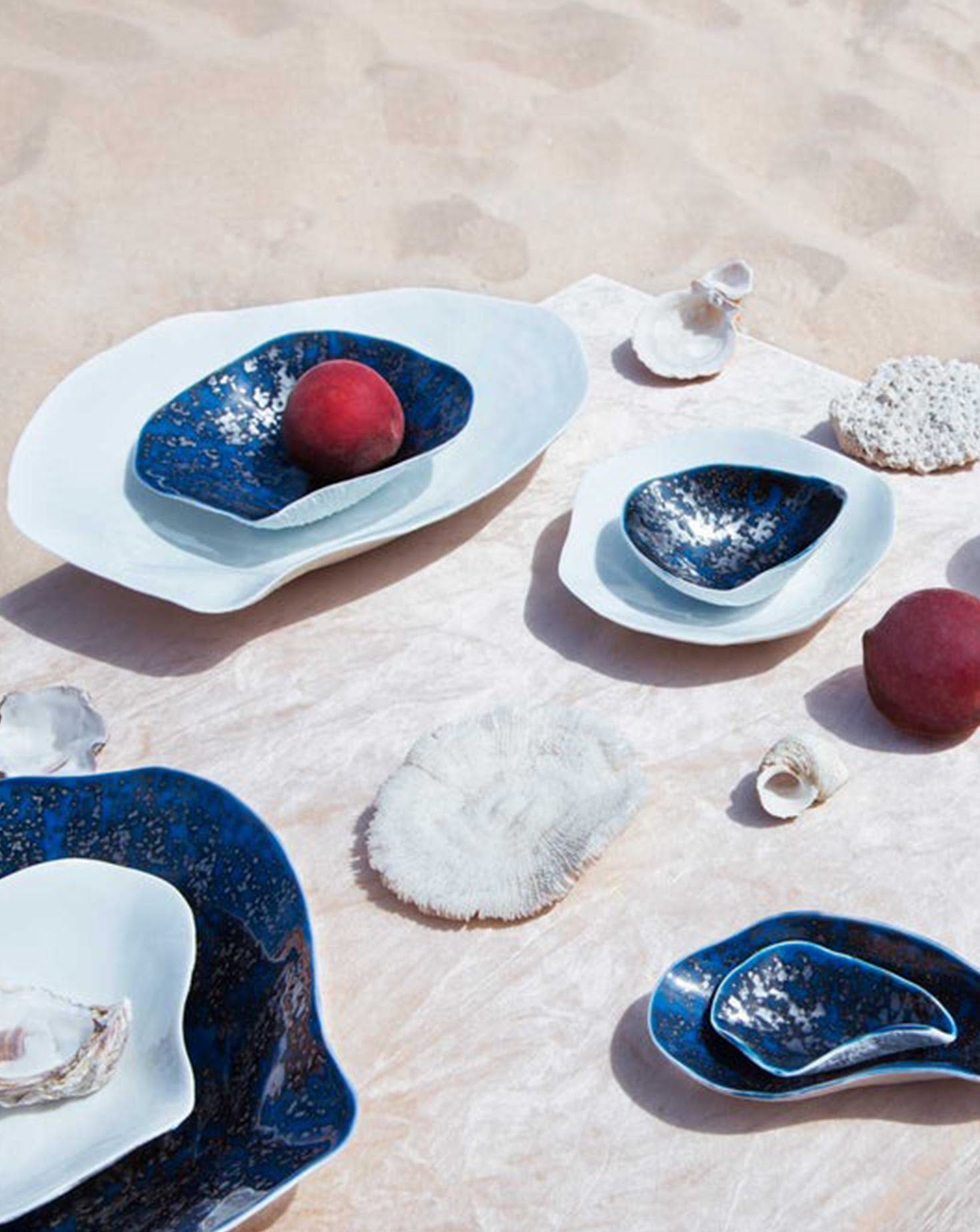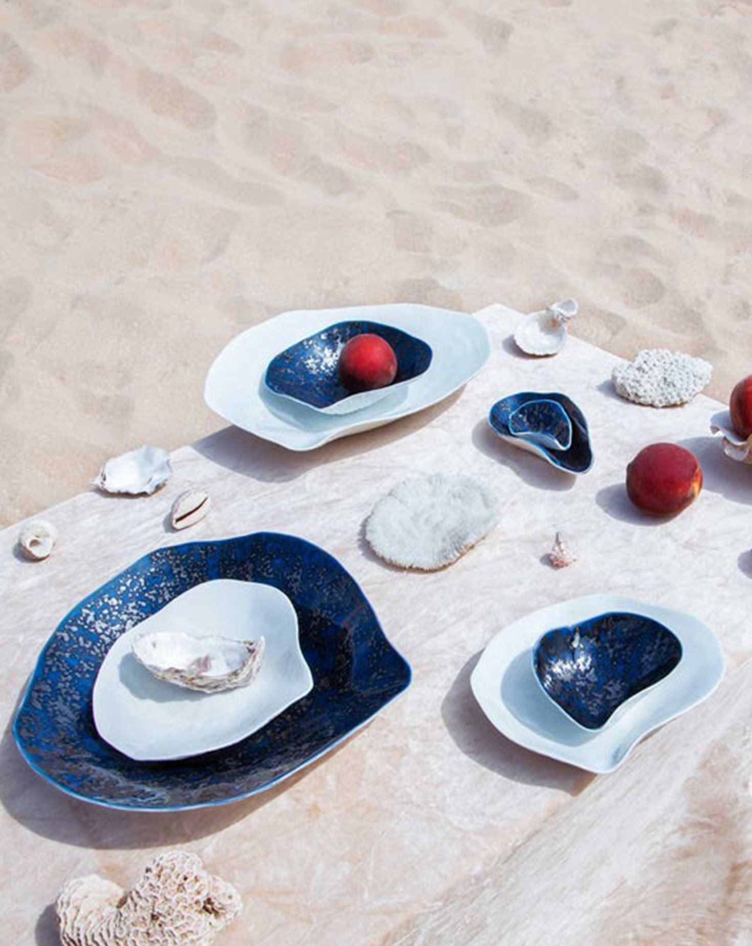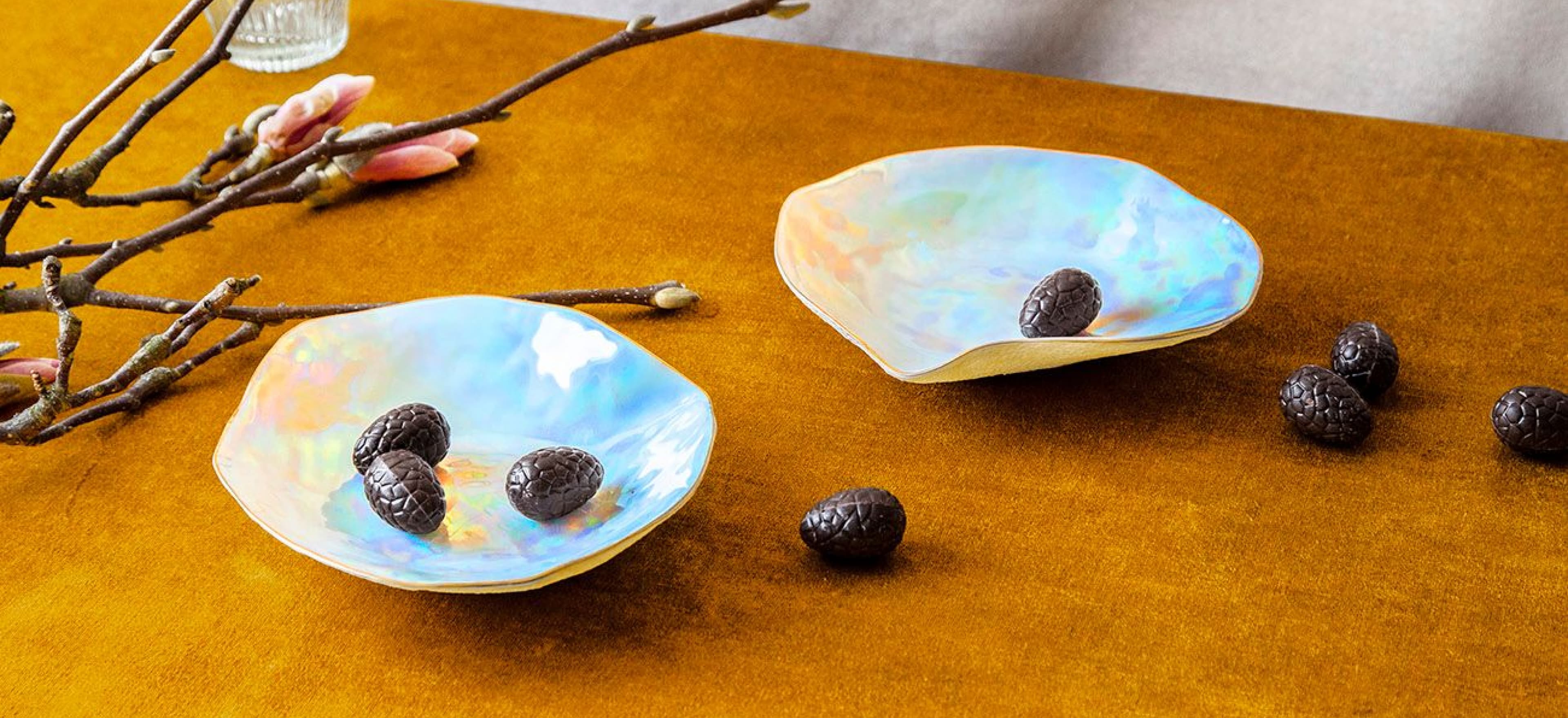 Sarah-Linda creates “sensual tableware” which is “handmade with love” in Limoges, France. Each expertly crafted item has an organic shape that gives it a natural appearance with a contemporary edge. From start to finish, skilled craftspeople take care of every step, making sure no detail is overlooked. Some of the pieces resemble sea shells, while others feature iridescent finishes evoking mother-of-pearl. Sarah-Linda’s tableware is favoured by leading chefs and is used at several Michelin 3-star restaurants.