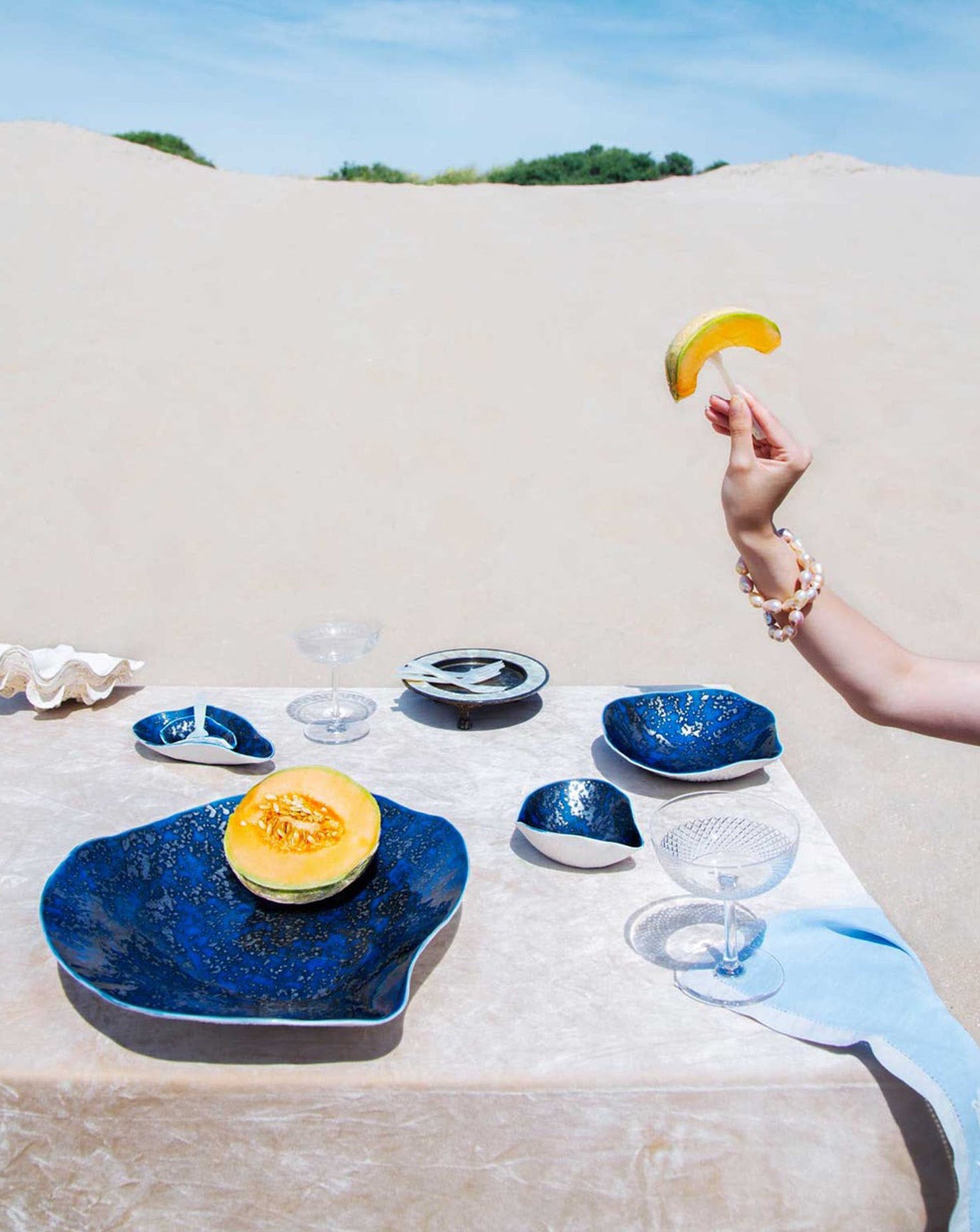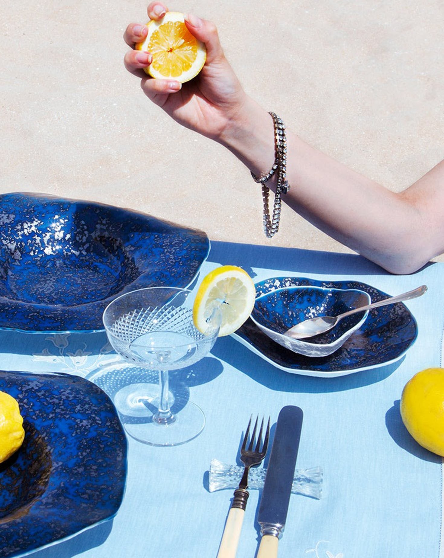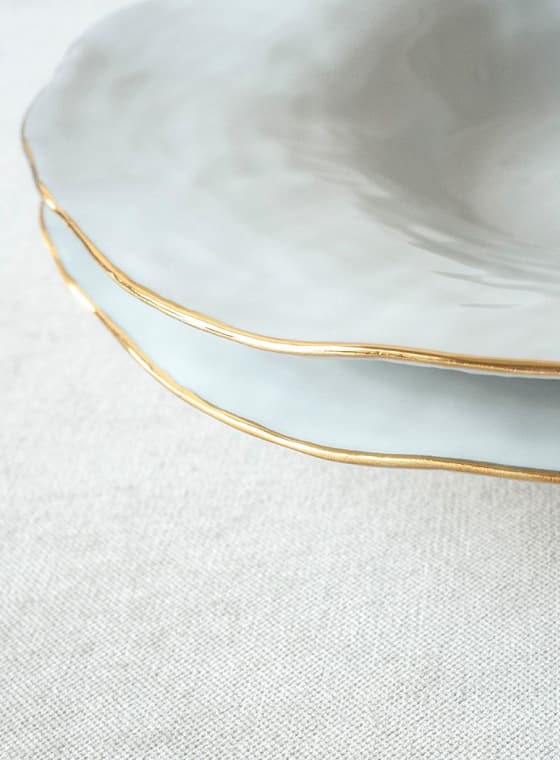 Sarah-Linda creates “sensual tableware” which is “handmade with love” in Limoges, France. Each expertly crafted item has an organic shape that gives it a natural appearance with a contemporary edge. From start to finish, skilled craftspeople take care of every step, making sure no detail is overlooked. Some of the pieces resemble sea shells, while others feature iridescent finishes evoking mother-of-pearl. Sarah-Linda’s tableware is favoured by leading chefs and is used at several Michelin 3-star restaurants.