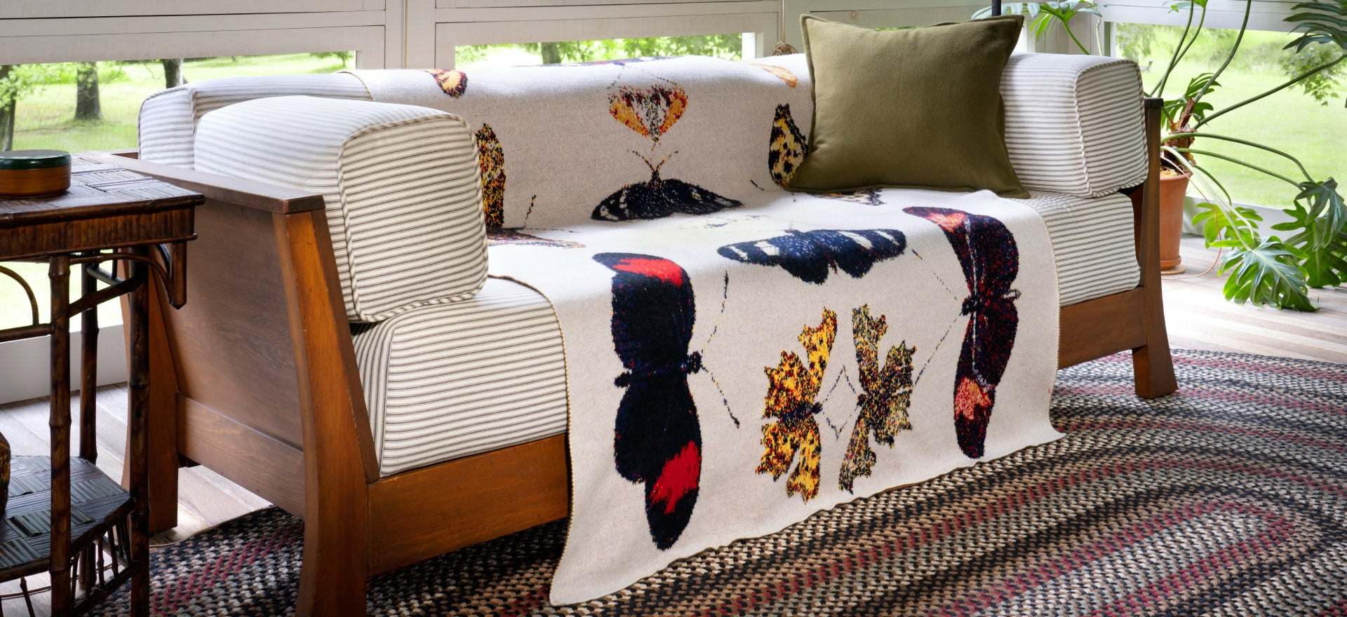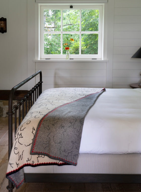 Saved NY designs are influenced by a lifetime of collecting objects, textiles and ephemera from around the world. The pillows and blankets feature patterns inspired by diverse sources ranging from malachite rocks to Turkish woodblock prints. Sean believes in quality production methods, including the use of sustainable materials. His reverence for the traditions of Mongolian nomadic culture informs his fairtrade approach to collaboration and community integration. He regularly travels to Ulaanbaatar to visit the artisans who weave his pieces from the finest cashmere, camel hair and yak down.