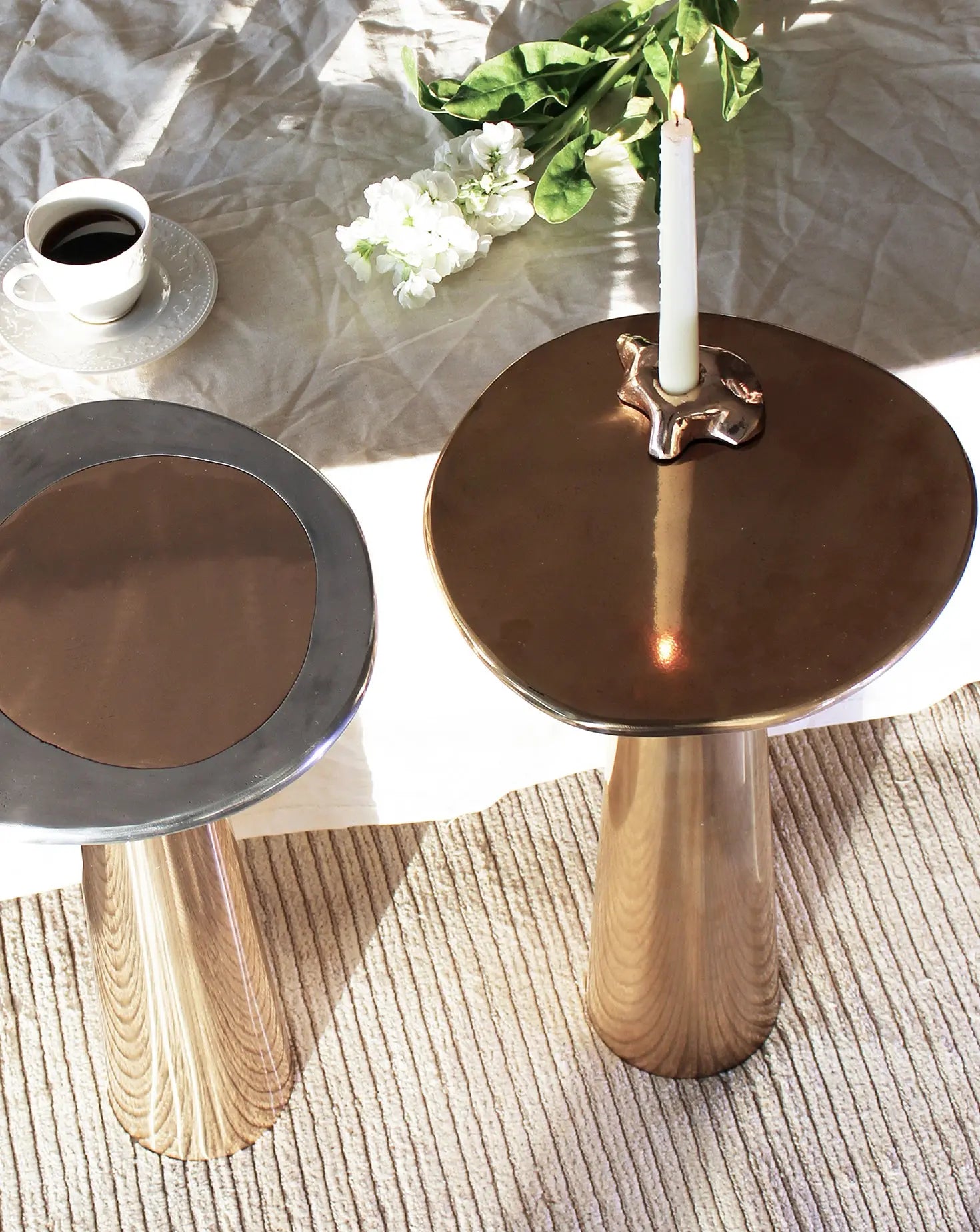 Through an exclusive collaboration with skilled local artisans, Studio Sunt breathes life into solid bronze, employing ancient sandcasting and hand-moulding techniques to create versatile and enduring creations — think lustrous coffee tables, illuminating fixtures, and sculptural decor. Reflective and silky finishes intertwine with rugged surfaces to create a captivating interplay of textures. Studio Sunt's work is not only built to last but also offers tactility and intrigue.