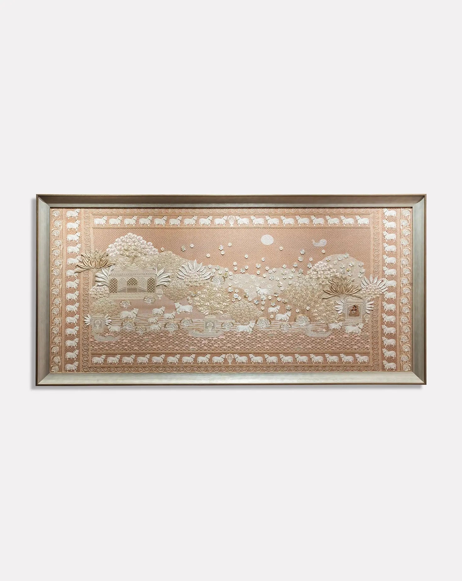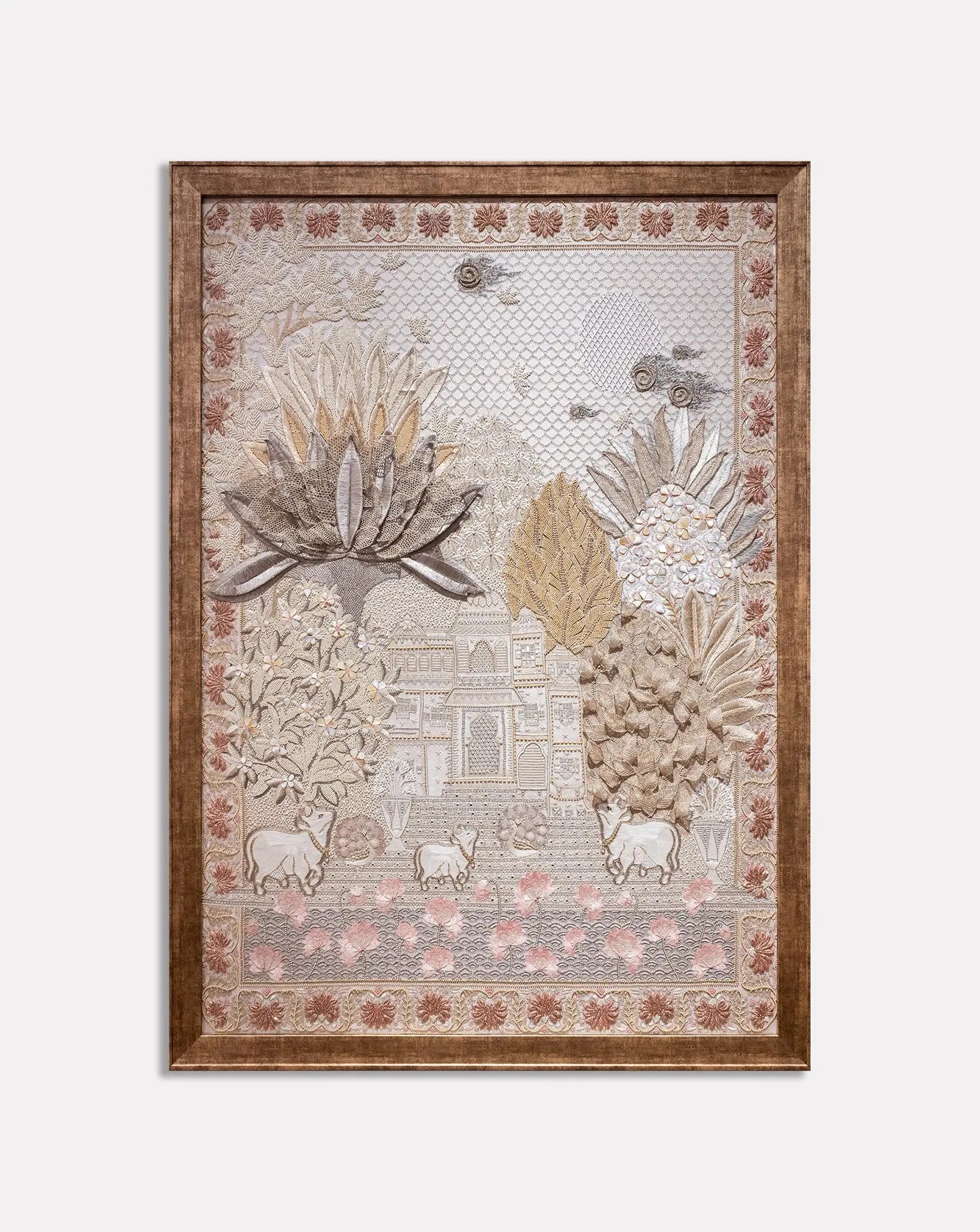 A master of aesthetic fusion, Tarun finds inspiration in the crafts of India as well as Western techniques and traditions. Travel forms the backbone of his creative process, but always as a collaborator rather than as a tourist. As a result, he is able to draw upon a wealth of skills, from bespoke tailoring to interior design. His interior design portfolio includes a luxury villa in Goa, and the Aish restaurant at the Park Hotel in Hyderabad. A polymath in his own right, Tarun's artworks embody his curious spirit.