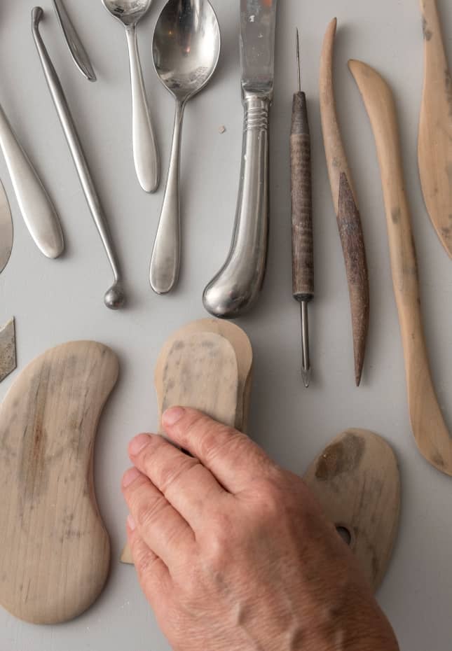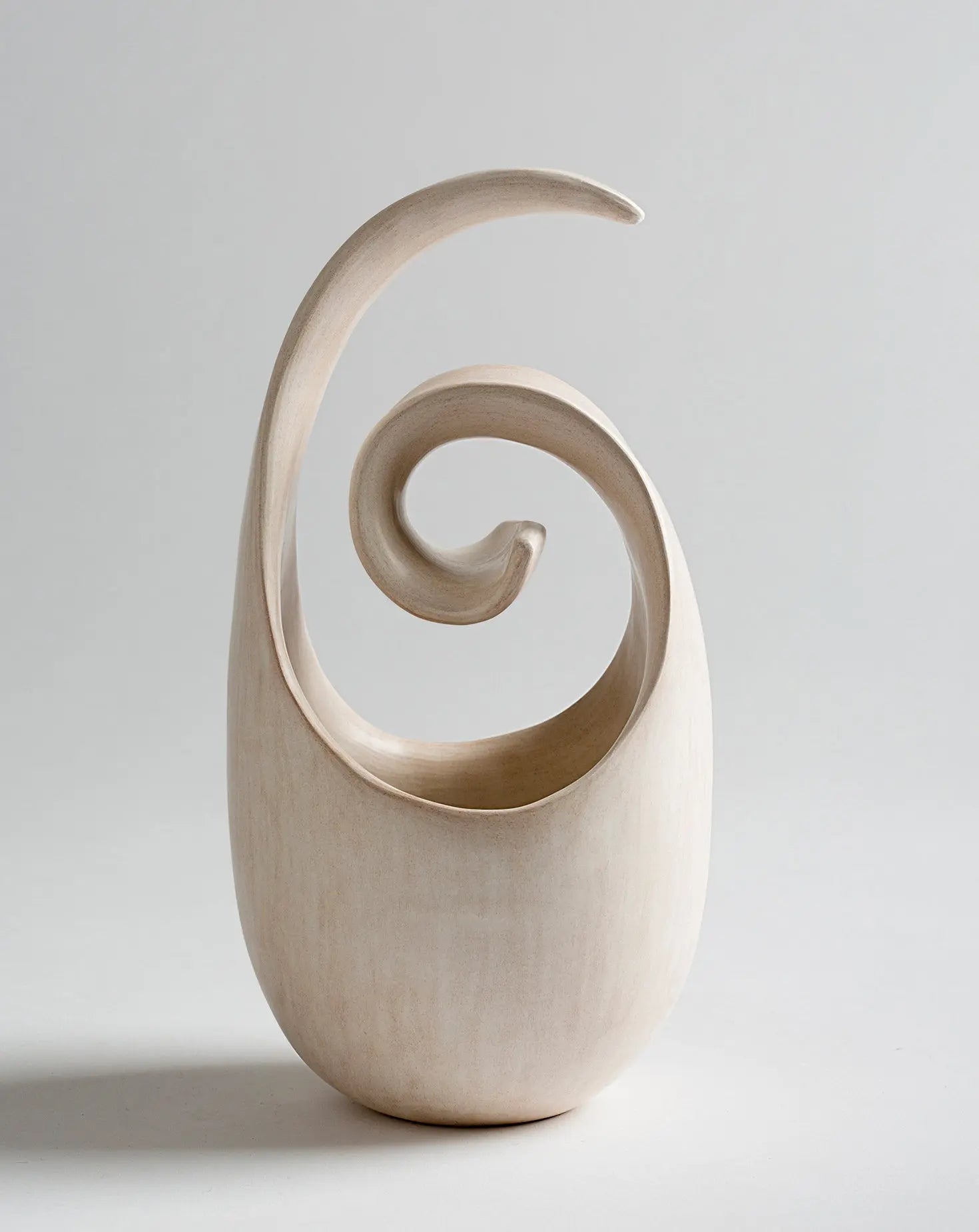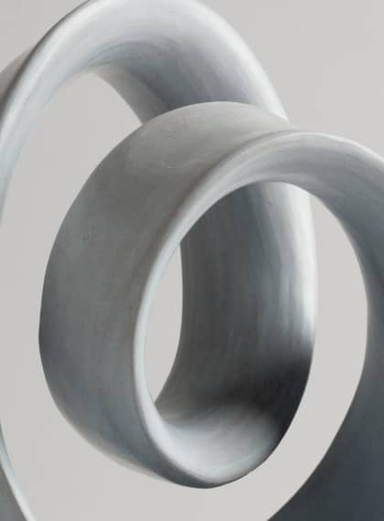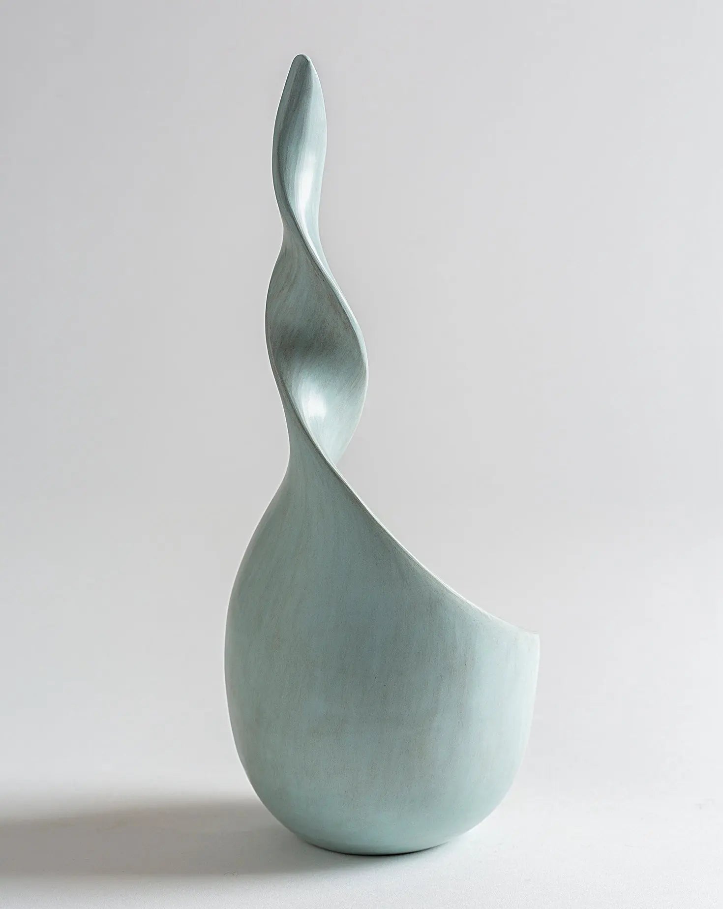 Tina enjoys the immediacy of using clay straight out of the bag and finishing pieces by burnishing – where clay is polished to a beautiful sheen without the use of glaze – to create depth and tonal variation. Full of movement and fluidity, her work is informed by the performing arts. Often pieces are grouped together, activating the spaces between the work and producing a synergy between the elements. Her ‘pots’ are made with an eye to the possibility of function but this is always balanced by a sculptural context.