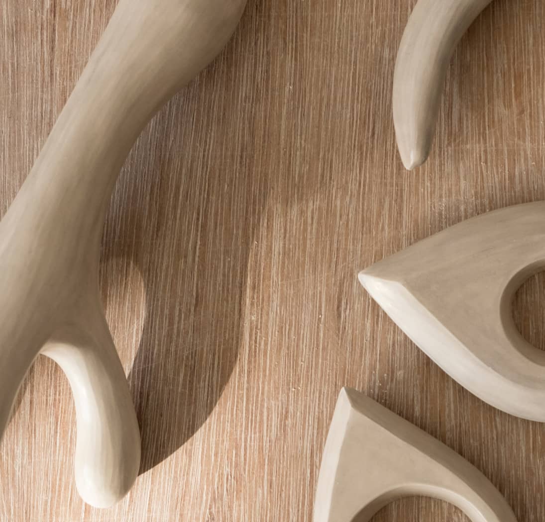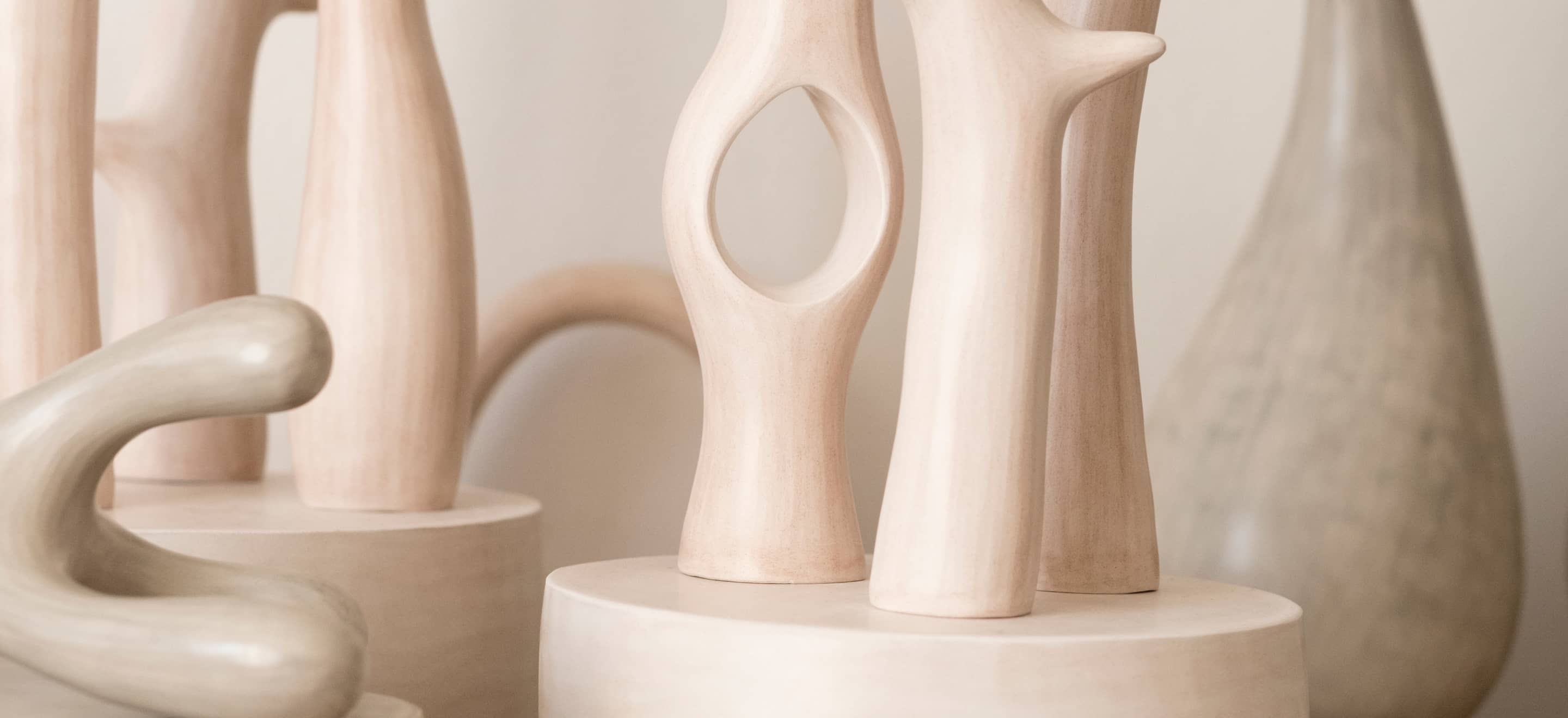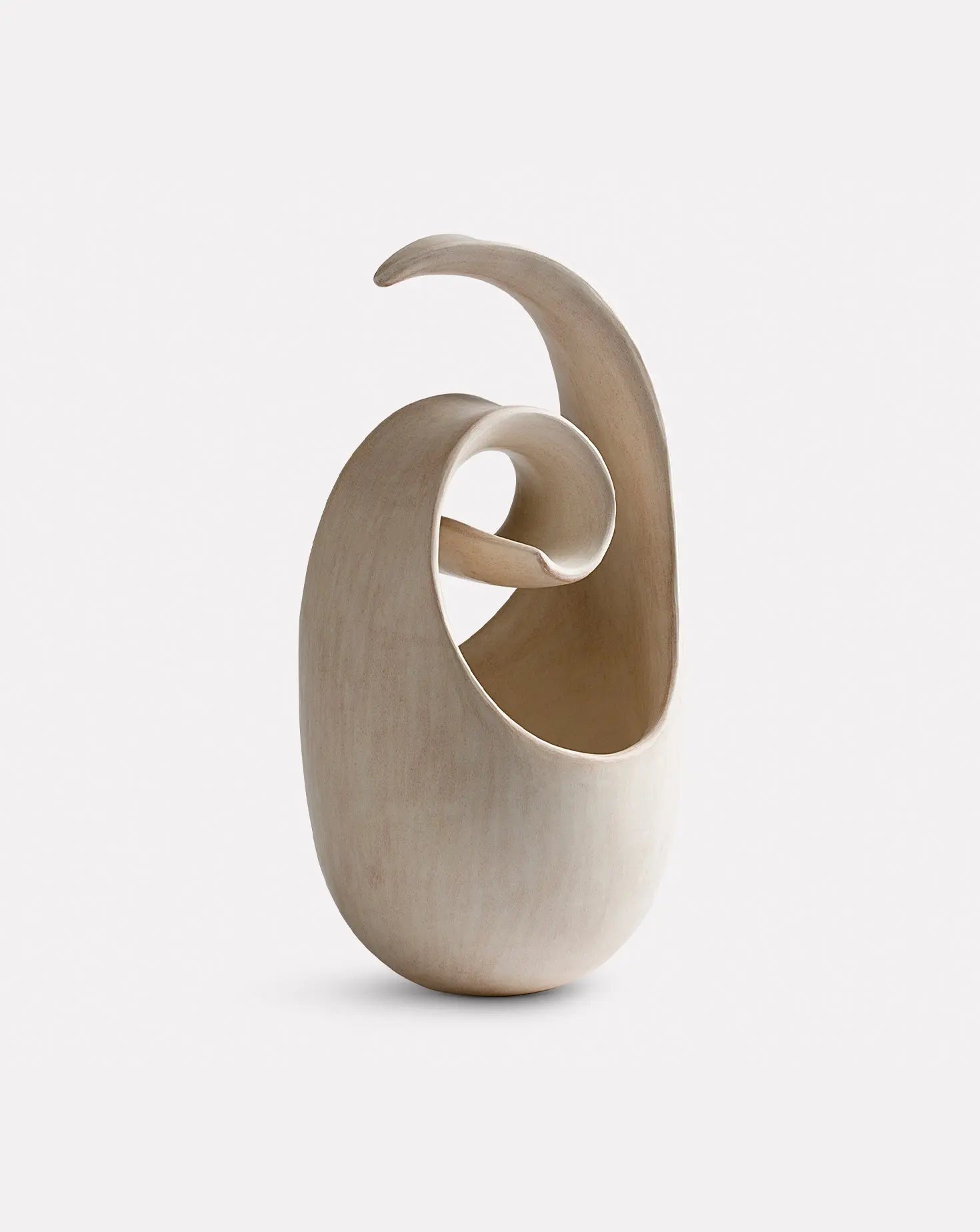 Tina enjoys the immediacy of using clay straight out of the bag and finishing pieces by burnishing – where clay is polished to a beautiful sheen without the use of glaze – to create depth and tonal variation. Full of movement and fluidity, her work is informed by the performing arts. Often pieces are grouped together, activating the spaces between the work and producing a synergy between the elements. Her ‘pots’ are made with an eye to the possibility of function but this is always balanced by a sculptural context.