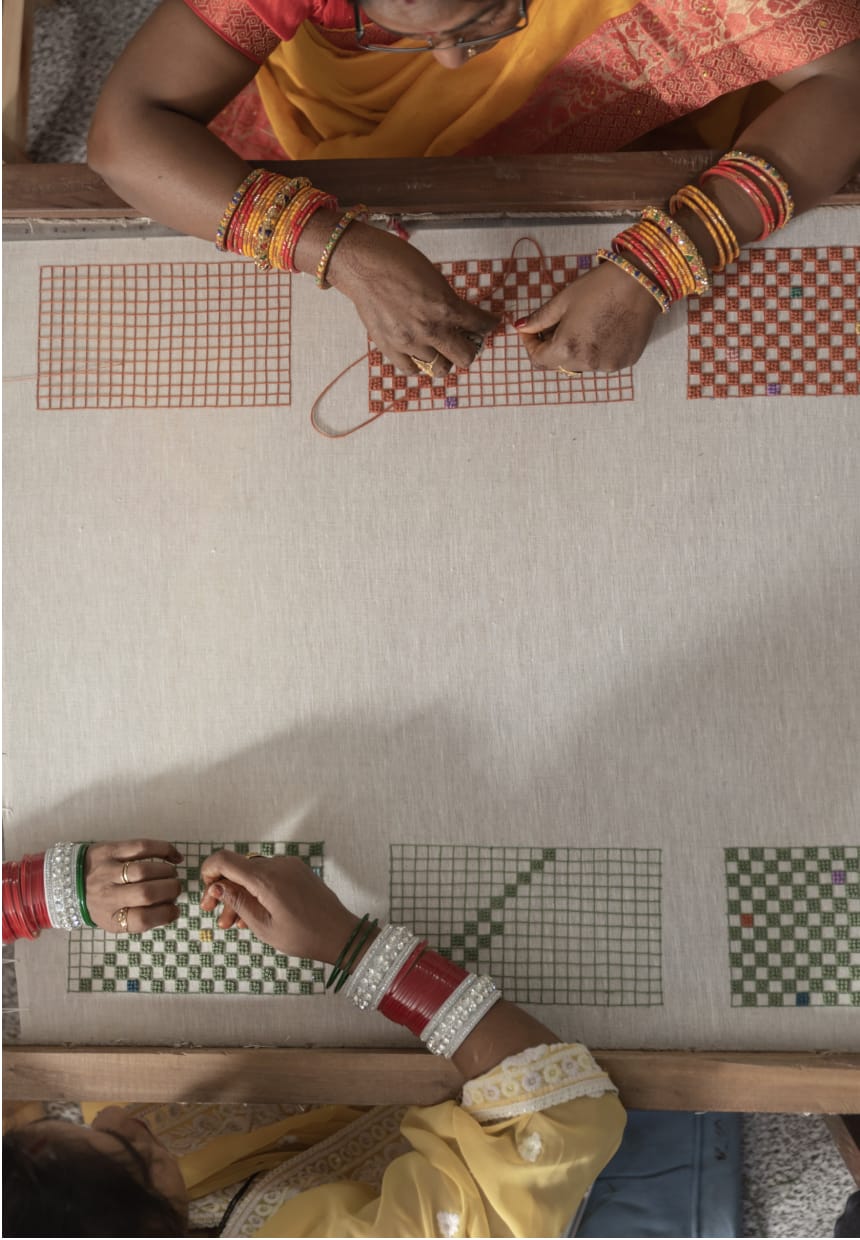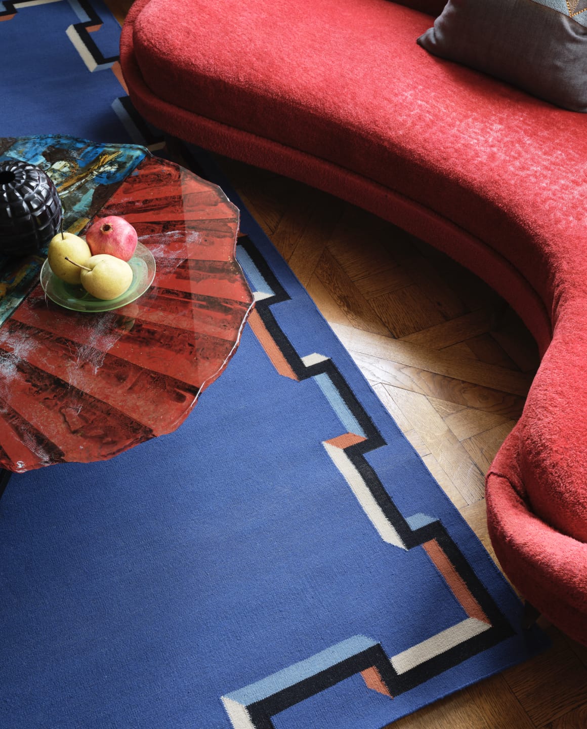 Born into the antique trade, Christine is a master of colour and tactile geometry. Her sought after designs draw inspiration from travel and creative partnerships. She sources the finest wool, silk, mohair, linen, hemp and viscose yarns for her high-end woven fabrics, which can be used to create bespoke curtains, cushions and upholstery, as well as floor and wall coverings.