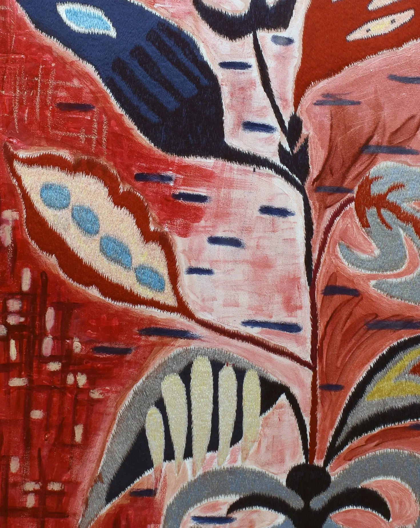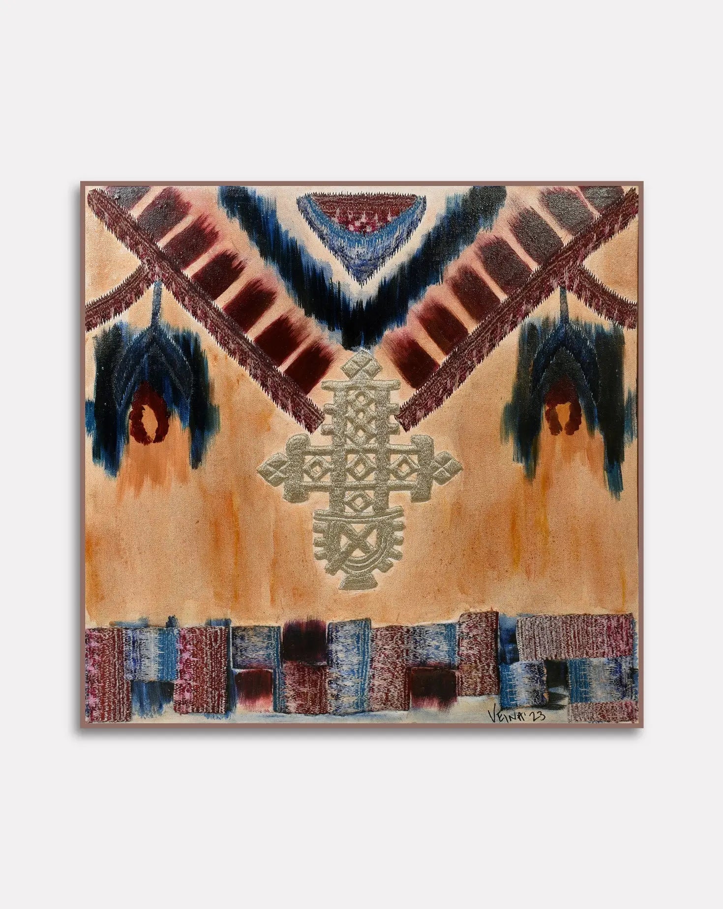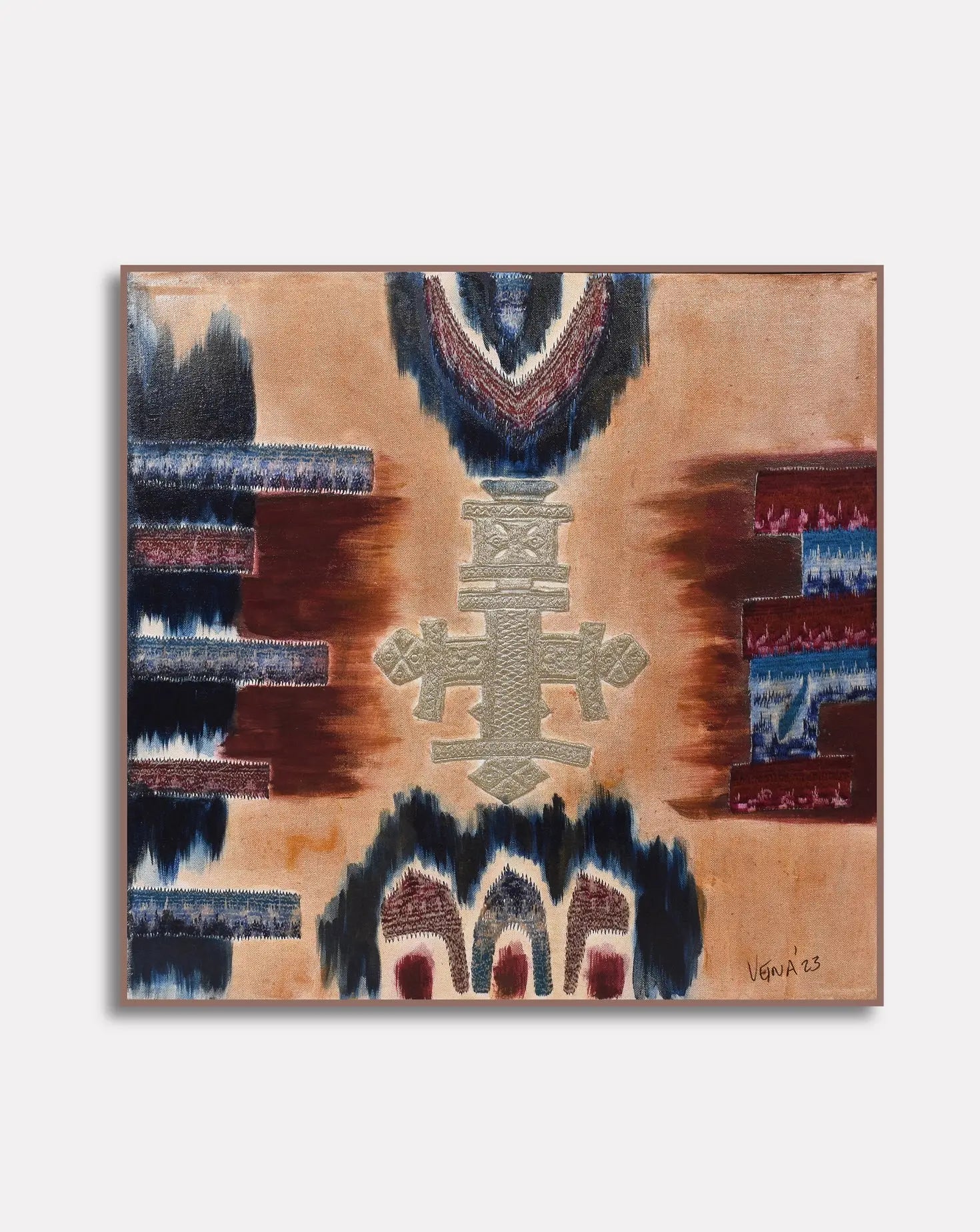 Each painting weaves together Veena’s passion for classical art and artisan techniques, breathing new life into raw metallic beading materials and embroidery. The artworks depict trees, birds or abstract forms influenced by nature and her experiences in the fashion world. Veena focuses on creating a modern response to traditional craft practice. Through process and materials, she tells timeless stories, via needle and thread, bead and brush.