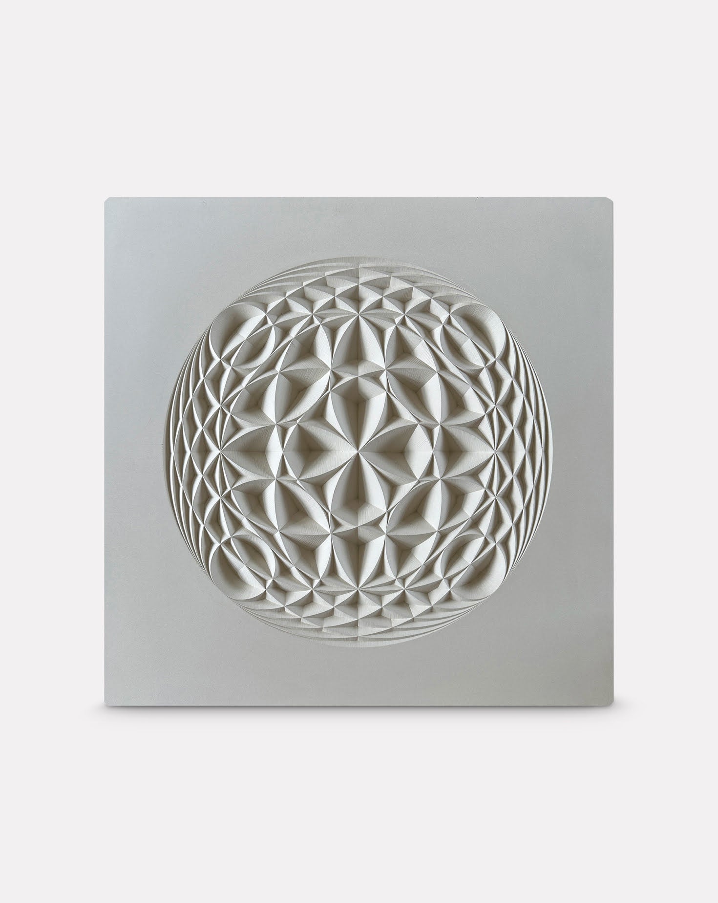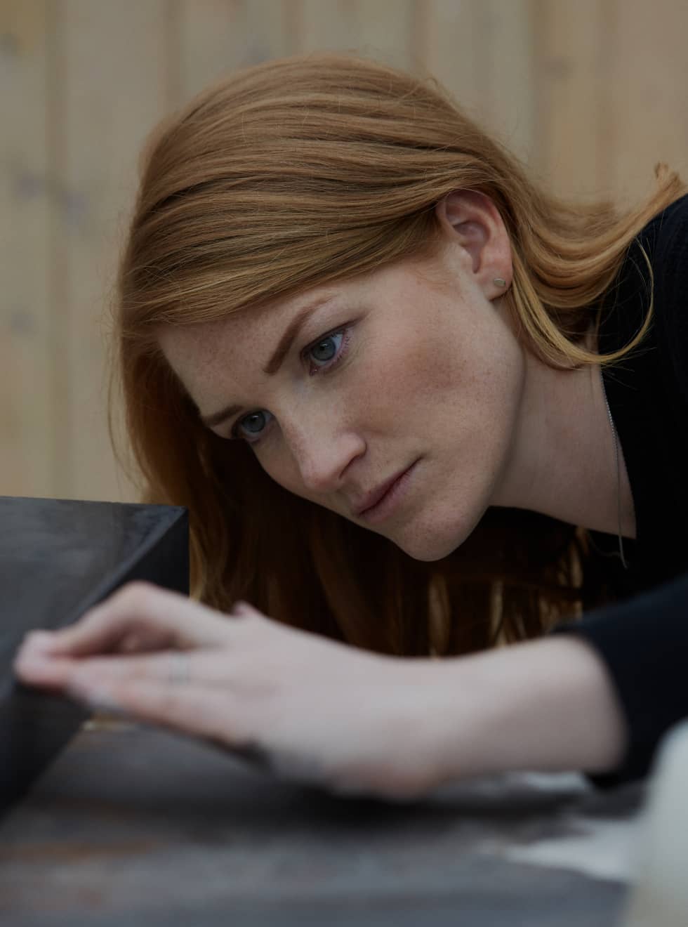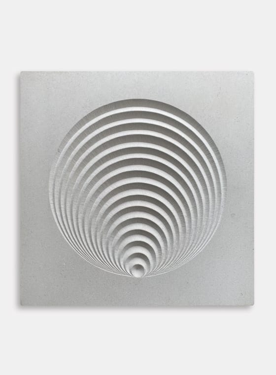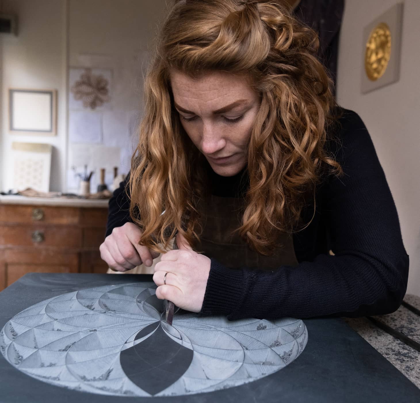 Committed to preserving the age-old craft of stone carving, Zoë produces contemporary works that bridge the gap into art. She begins each piece by scoring complex geometric patterns onto the surface of the stone, offering a guide for the development of clear, concise carving. She uses a traditional mallet and chisel, leaving marks in the surface that show the presence of the maker. Each stone sculpture is developed in sections and emerges in the round. Passionate about British stone, Zoë's works are often realised in Welsh slate, Portland stone and Scottish sandstone.