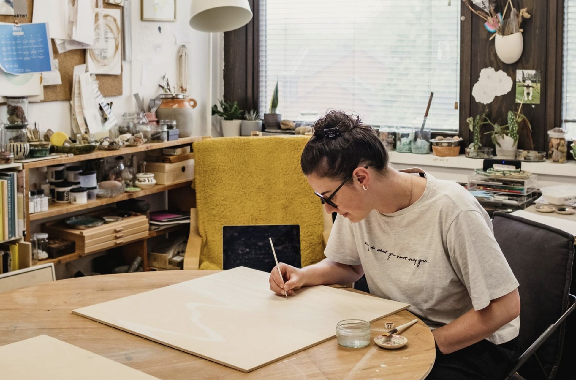 Lisa’s abstract artworks are created using pigments she forages from both urban and rural settings. In this case, the pigments are made from rocks found by in various UK locations such as London, Hampshire, Wales and Scotland. A Matter of Perspective is part of the Tender collection, which uses a muted and understated colour palette to encourage viewers to look more closely and purposefully at the intricate design. Painted by hand onto a piece of birch plywood, this piece is intended to inspire and express our individuality.