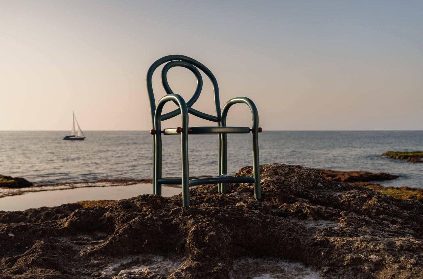 Acil Swing Chair extends the narrative of voyage and Levantine exploration through the Safar motif. Engraved detailing at the base introduces a sense of memory and movement, complemented by a palette of dusk pink and sunrise beige.