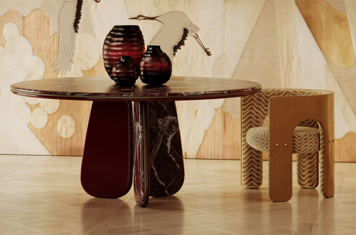 Crafted by master artisans in Portugal, the chair combines noble materials, tactile upholstery, and discreet brass detailing, with materials selected for durability and responsible sourcing.
