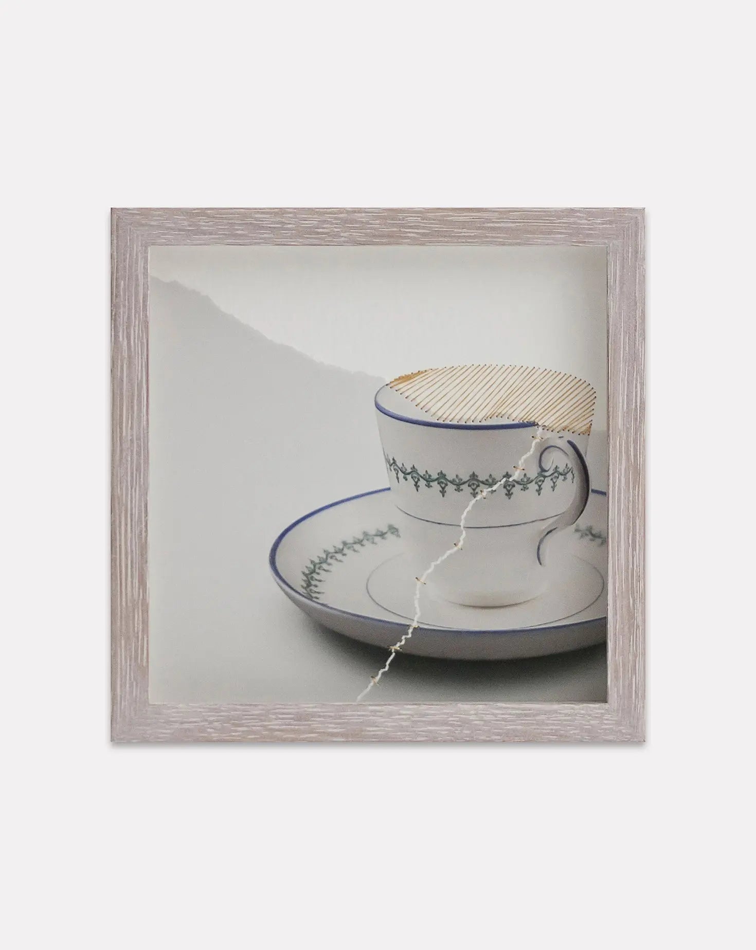 The 'Broken Things' series draws inspiration from Kintsugi, the ancient Japanese art of restoring ceramics using gold lacquer. The artworks explore themes such as imperfection, waste, and consumerism.