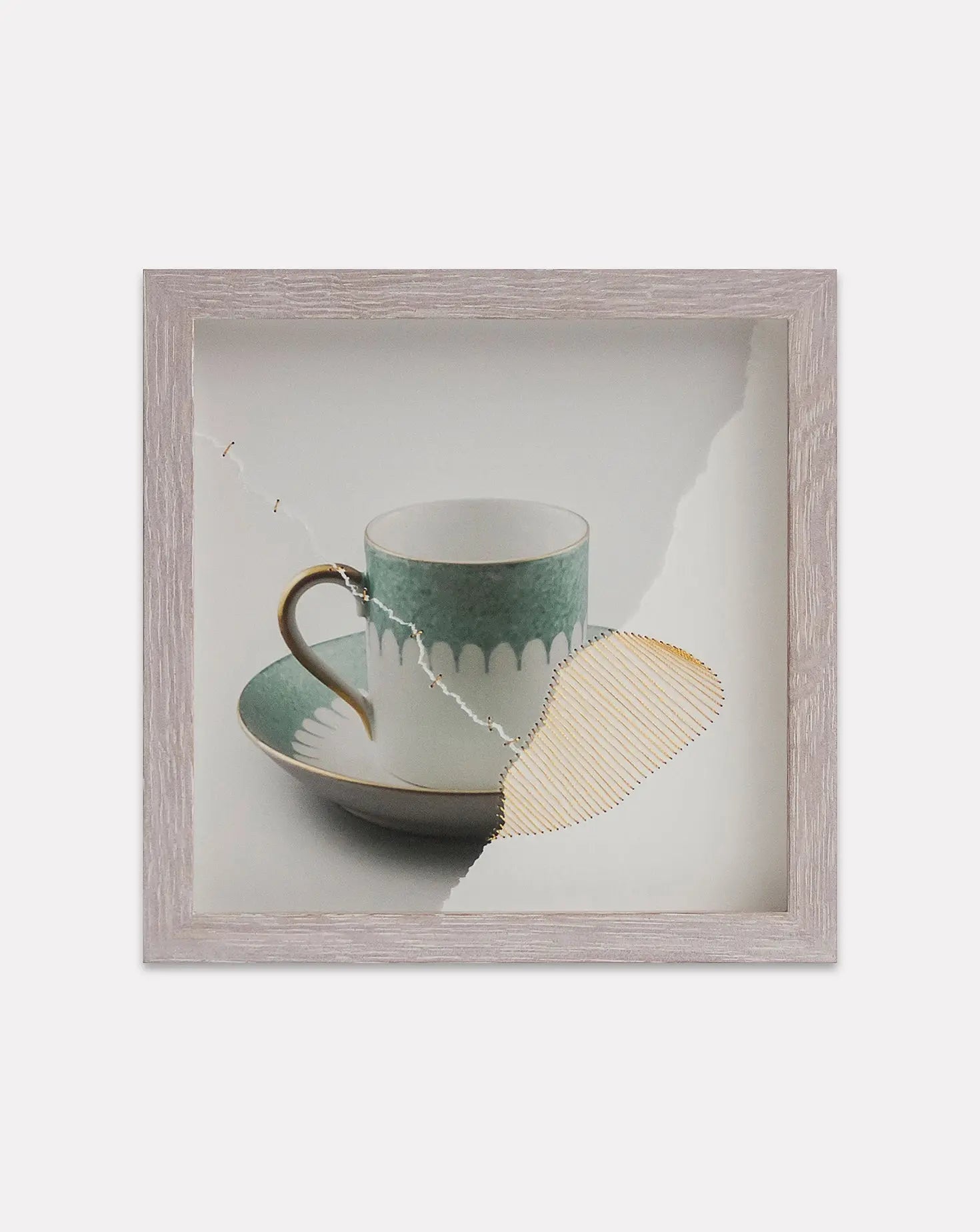 The 'Broken Things' series draws inspiration from Kintsugi, the ancient Japanese art of restoring ceramics using gold lacquer. The artworks explore themes such as imperfection, waste, and consumerism.
