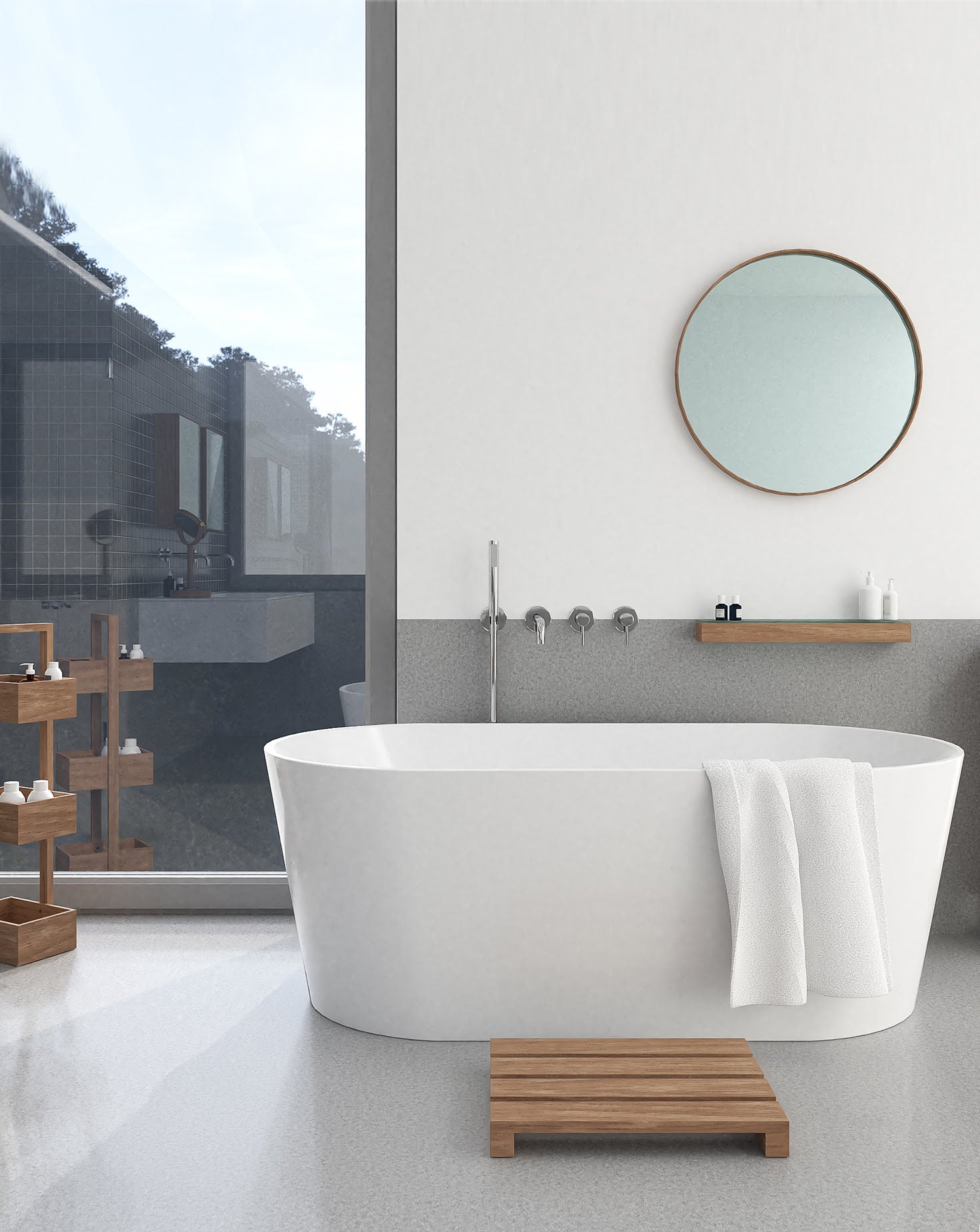 Both finishes highlight the wood's beautiful grain pattern and traditional hardwood durability. Every edge is meticulously hand-sanded to a smooth finish, enhancing its tactile quality. Coated with a matte, water-resistant lacquer, the piece ensures lasting durability, while silicone rubber feet provide stability and prevent slipping on wet surfaces.