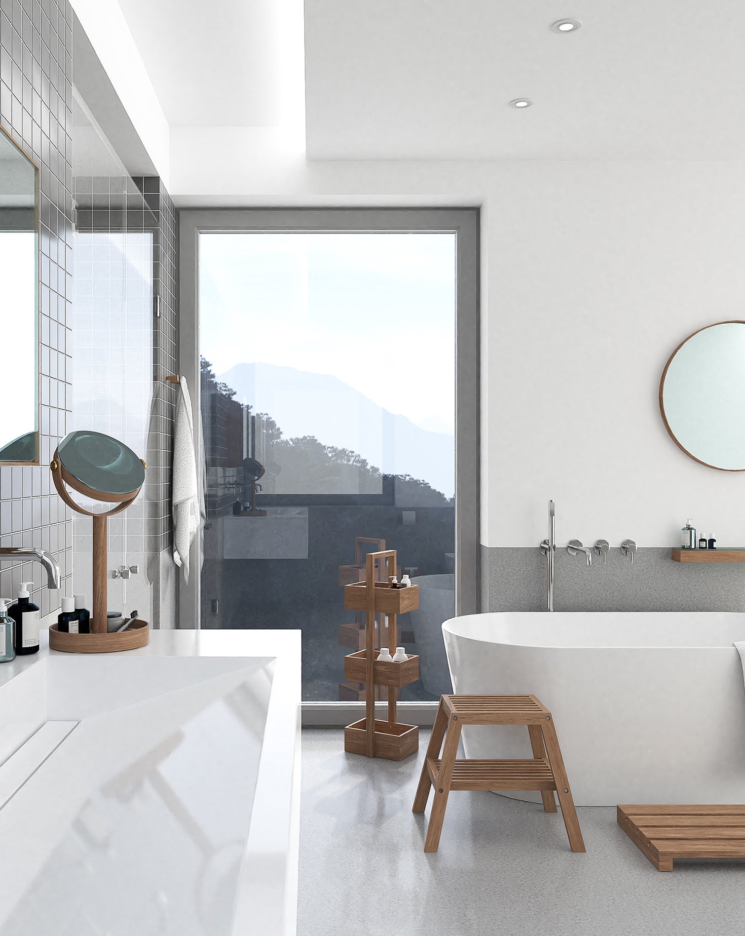 Each piece is finished with a matte, water-resistant lacquer to ensure longevity. Edges are meticulously hand-sanded for a smooth feel, while silicone feet offer stability and prevent slipping, making this duckboard a practical addition to any bathroom.