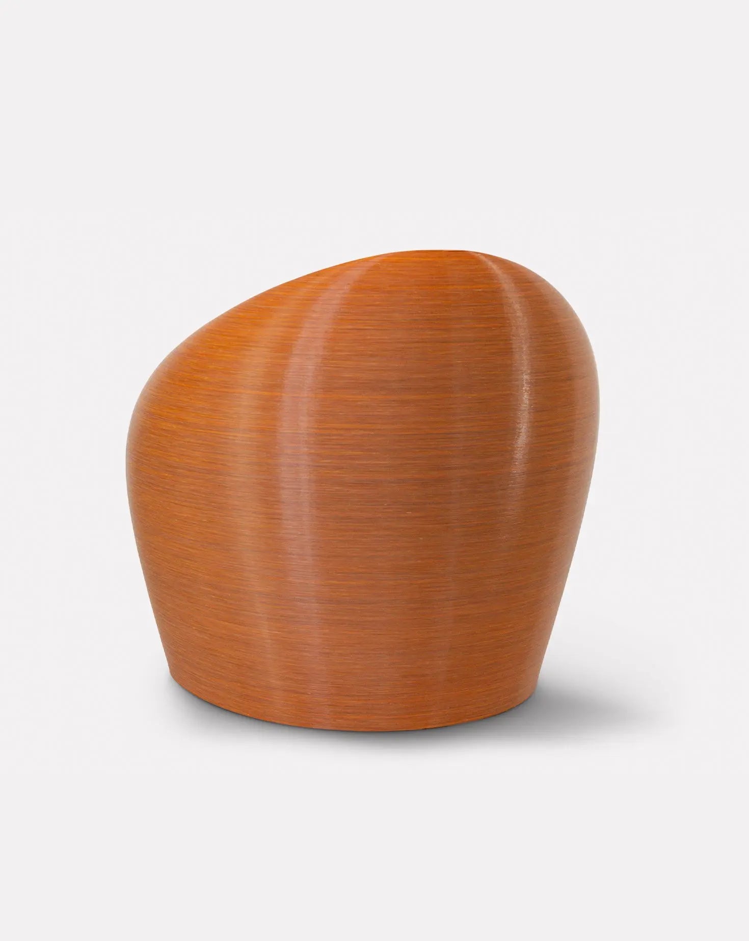 The generously proportioned chair embraces the user with its organic shape based on a snail’s shell. The outer form is made from a sustainable bioplastic called PLA and supports a comfortable padded seat. This sculptural and poetic piece is part of a collection that includes the accompanying Lissa coffee table.