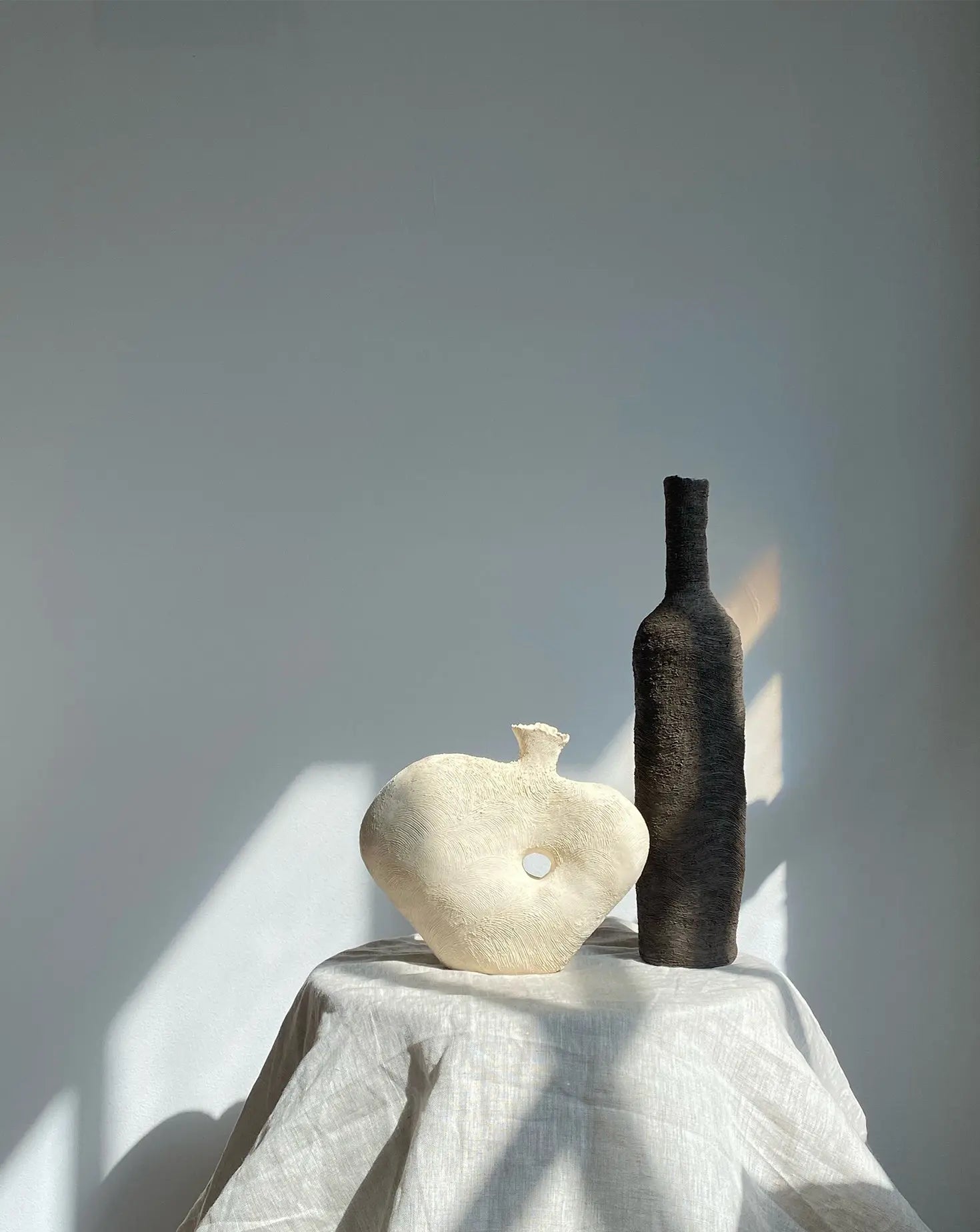 British ceramic artist Tania Whalen combines traditional and contemporary techniques when crafting her unique ceramic pieces. Using the pinch and coil method, she plays with surface textures and and brush stroke techniques, manipulating how light falls on each object.