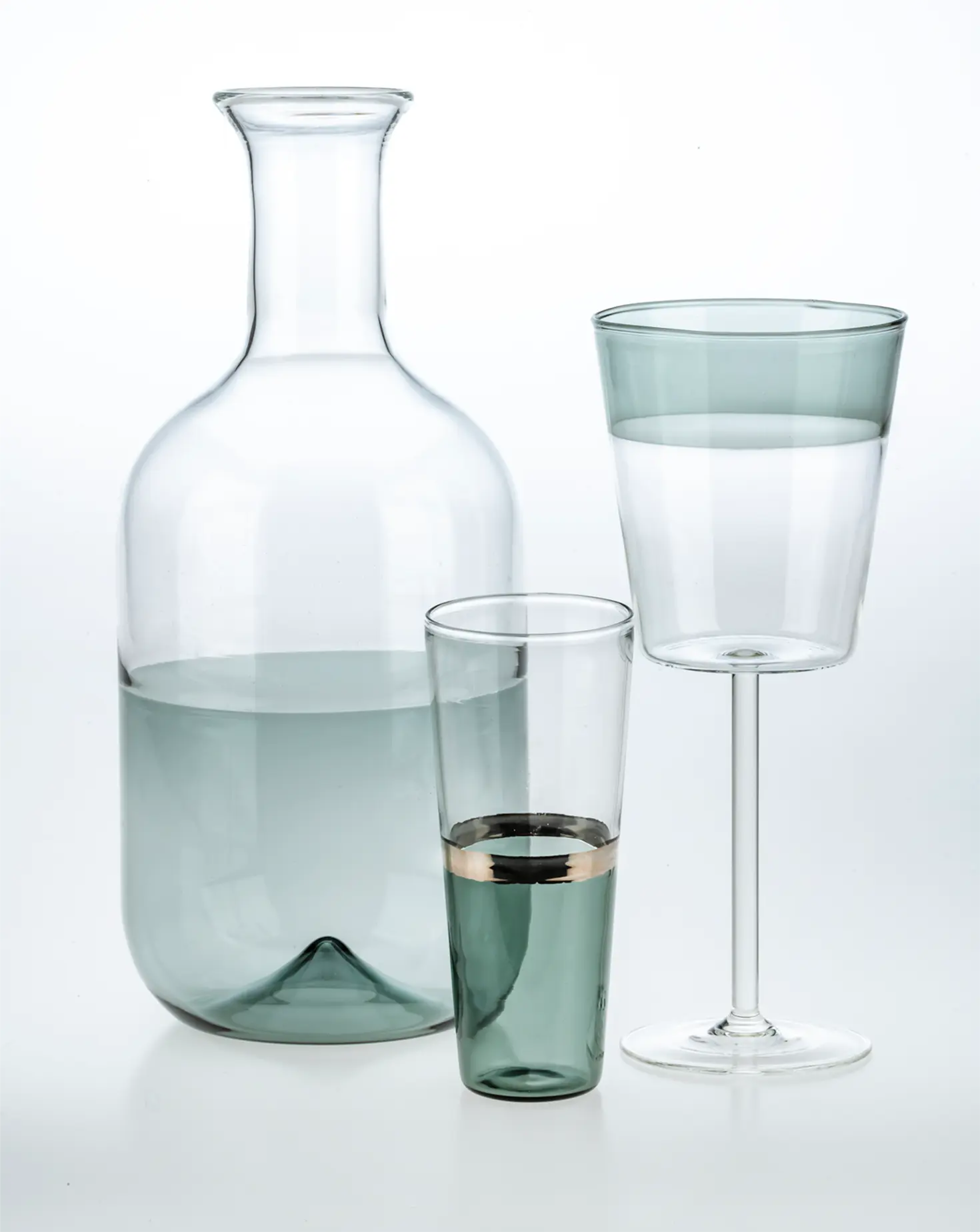 Handmade to order in Venice, each glass features a clean silhouette and a simplistic linear band of grey. Ribbed in texture for a tactile experience, the glasses are an authentic accompaniment to late lunches and leisurely evening meals.