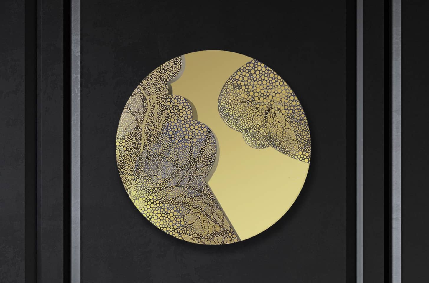 Reflections showcases carefully composed layers of reverse-glass painting.