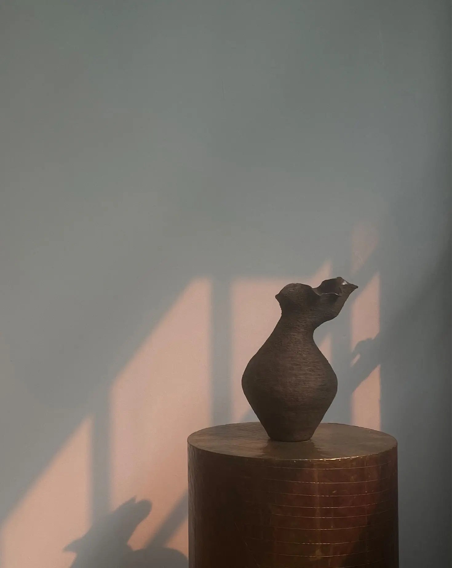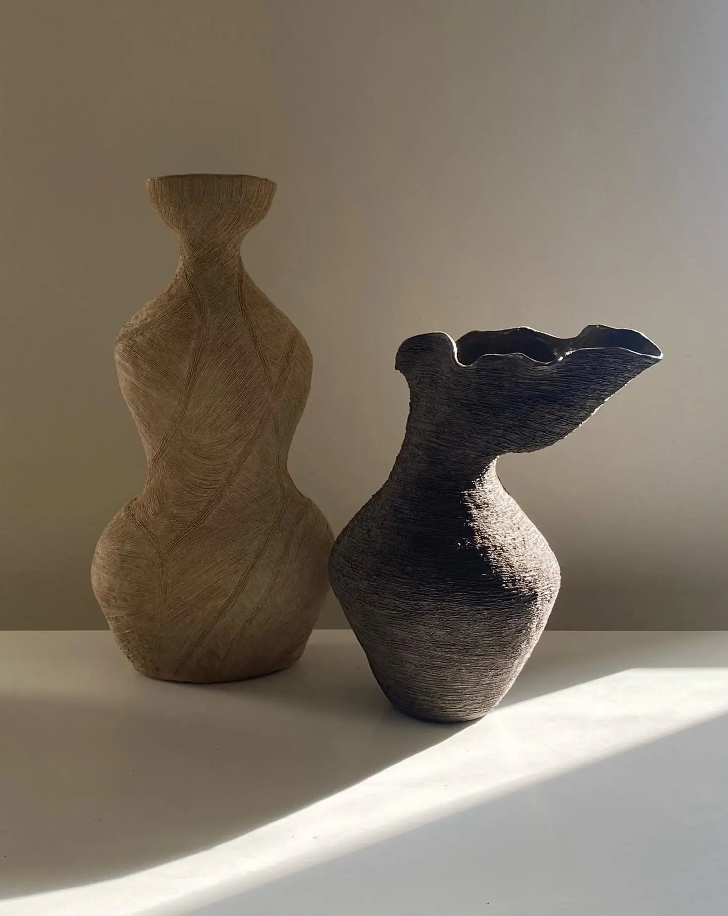 Handcrafted in Brooklyn, the Morandi bottle is a tall, slim vessel with a uniquely textured raw surface, glazed interior and ruffled wide opening. Use this piece to display floral arrangements, or pair with other vessels to create a characterful