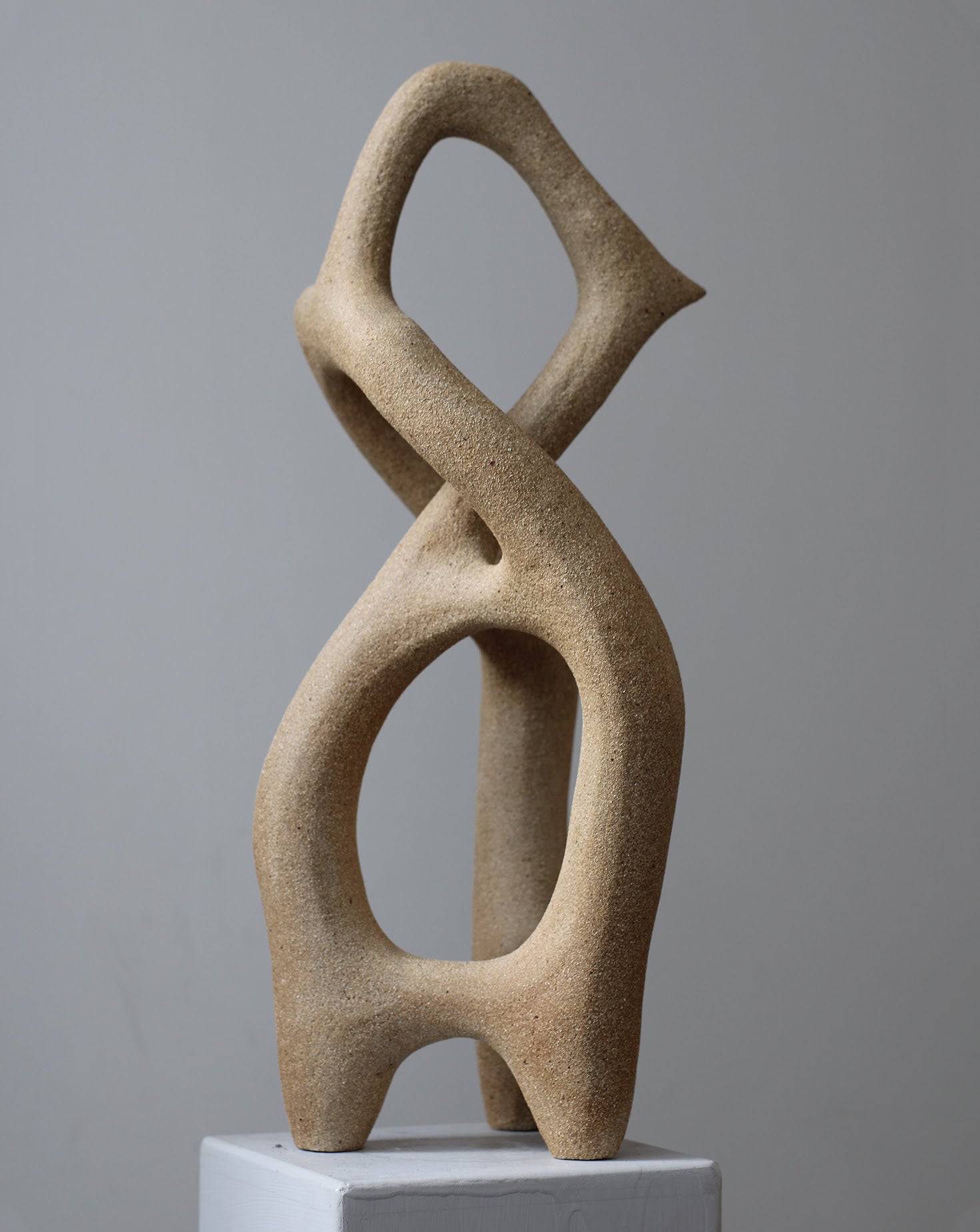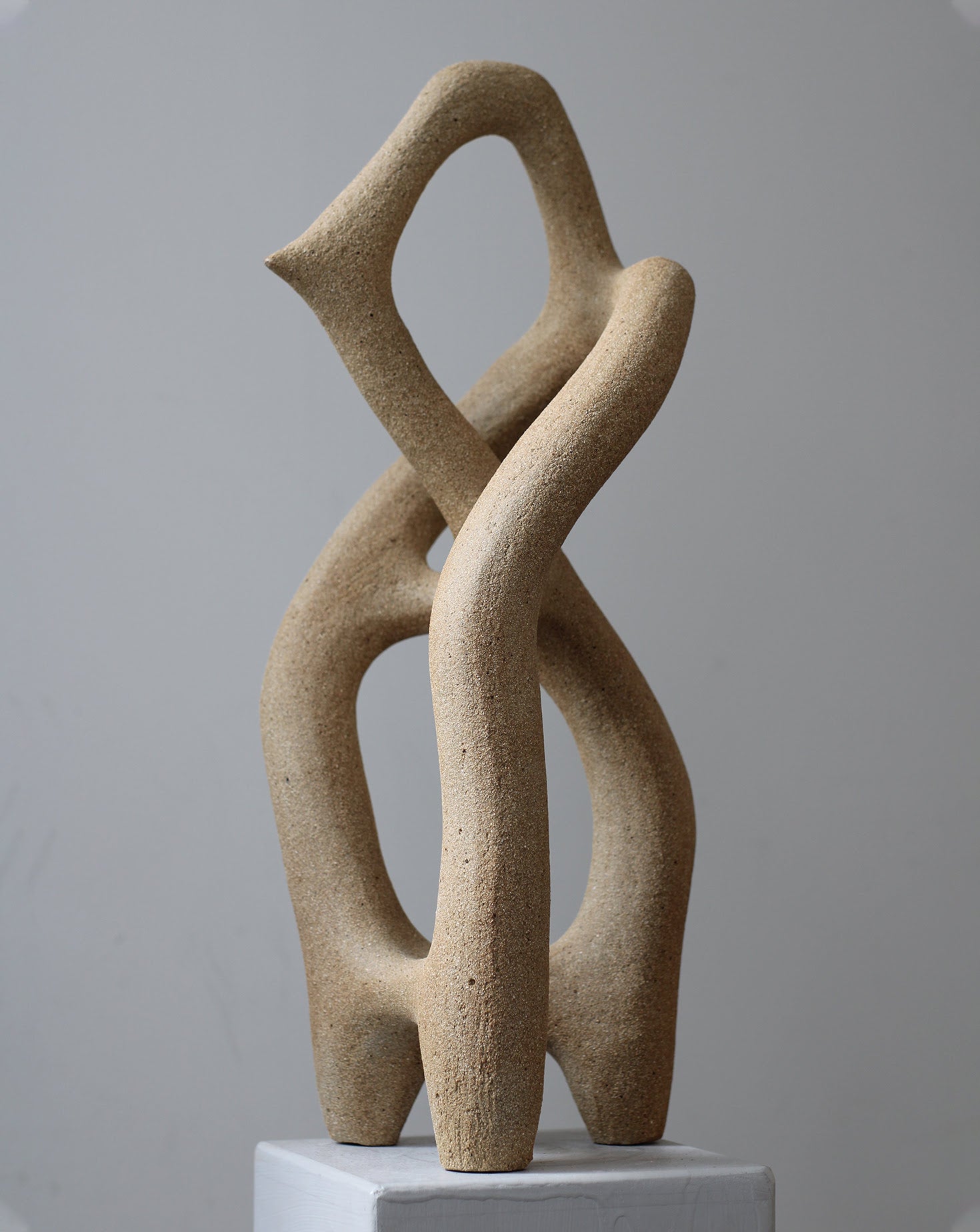 Three Way Junction III Sculpture is a hand-coiled sandstoneware ceramic piece, inspired by the fluidity of gene architecture inside cells. Its intertwined, tubular form evokes organic movement and transformation.