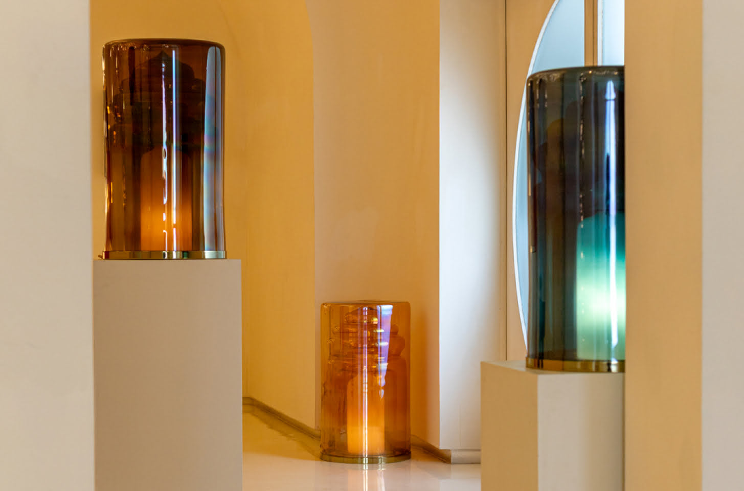The Vista Hanging Pendant by Kickie Chudikova in collaboration with KLOVE Studio transforms any space into a gallery of light and color. Drawing inspiration from the multifoil arches of Mughal architecture, the pendant’s layered glass design captures perspective and architectural depth. Gradients in the glass evoke emotion and spirituality, while the brass frame adds a contemporary edge. Ideal for hanging over dining tables, reading nooks, or entryways, this pendant provides both ambient and sculptural appeal.