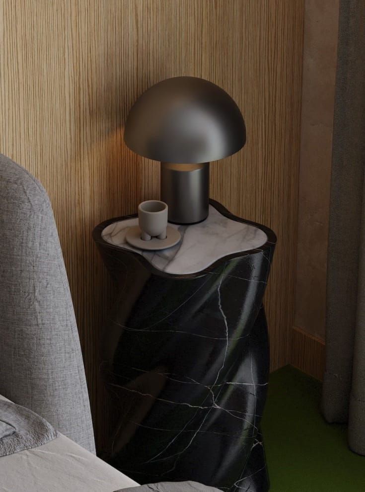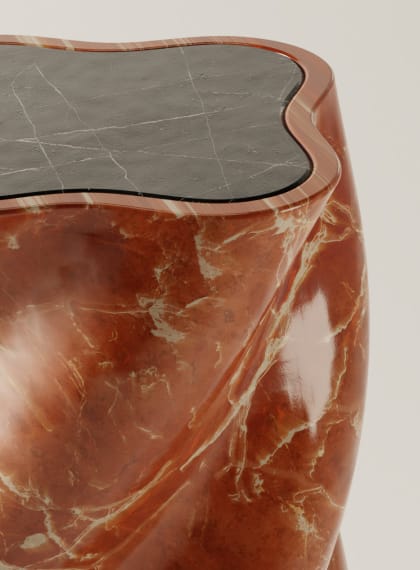 Sustainability, functionality, and playful minimalism sit at BURGIO.’s core. Stoneware pieces are moulded and hand-finished; the distinctive elastic "memory" of the raw material requires careful handling to attain its intended shape. Marble designs, including Carrara, Arabescato, and Nero Marquina, are shaped using CNC machines and then left with human hands to guarantee a seamless appearance, as each design originates from a single marble block. Keep an eye out for the reversible coffee table, available in five different marble stones and the whimsical FUUUUSILLO side table, inspired by the duo's favourite pasta shape.